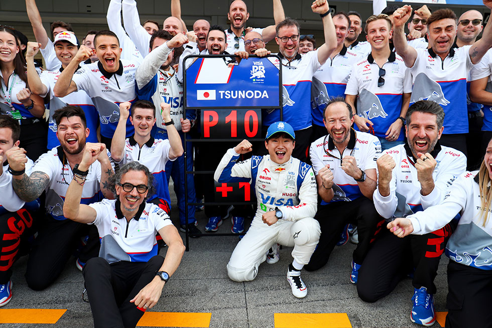 10番グリッドからスタートした角田は1周目に大きく順位を落としてしまっていたが、再スタート直後にポジションアップに成功し、粘り強いレースで10位入賞を果たした。マシンパフォーマンスとしては楽なレースではなかったが、最大限の結果を残して2戦連続の入賞と母国で初のポイント獲得を果たした。