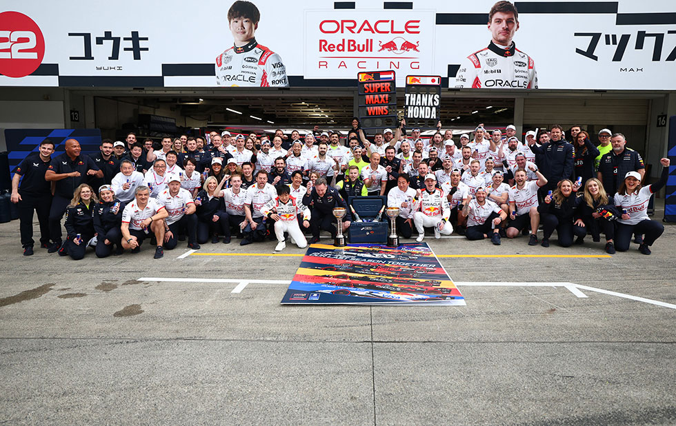 2025年はHondaがF1初優勝を挙げて以来60周年に当たる。鈴鹿サーキットに現れたレッドブルRB21はHondaの初優勝マシンRA272をトリビュートし、ホワイト×レッドのカラーリングで登場した。フリープラクティスではなかなかタイムが伸びない状況が続いたフェルスタッペンだったが、予選ではQ3最後にスーパーラップを披露しシーズン初のポールポジションを獲得してチャンピオンの凄みを見せる。決勝レースでもマクラーレン有利との予想を覆し、フェルスタッペンがポールポジションから最後までトップを守り切りシーズン初優勝。猛追するマクラーレン勢を最後まで抑え込む力走で、Hondaと日本への強い思いを示したフェルスタッペンに、ファンは大きな声援と賛辞を送った。