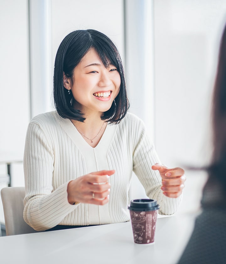 ノベルティ作りに興味があり、広告業界を希望していた。半年間の研修を経て、商品事業企画部に配属。初めのうちは、先輩のサポートを受けながら仕事をし、現在は車種業務を担当。