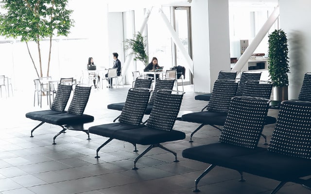 受付エリアは陽の光がたくさん降り注ぐ、開放的な空間です。