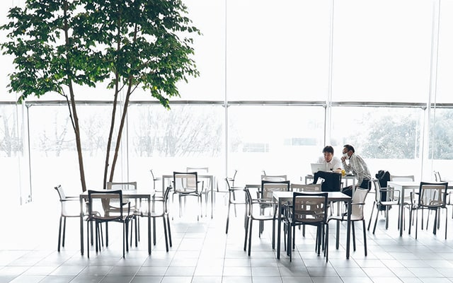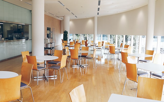 社内のカフェテリアでは、休憩中やランチ後などに社員が思い思いの時間を過ごしています。コーヒー・カフェラテや、季節ごとの限定メニューも提供しています。