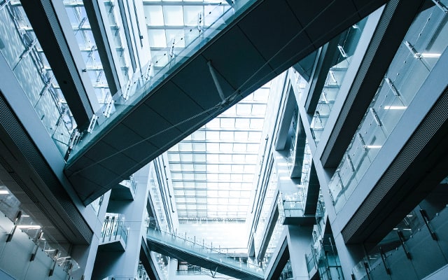 ビルの中心は吹き抜けとなっていて、晴れた日は自然光だけでとても明るい空間となります。このエリアで車両展示が開催されることもあります。