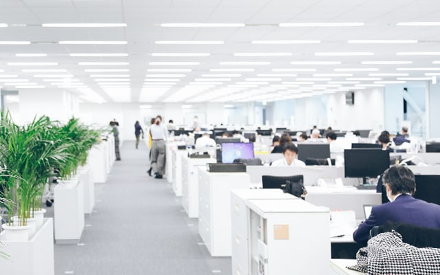 本社オフィスには複数の部門がワンフロアに集っています。部門毎に部屋が区切られておらず、オープンにコミュニケーションを取りやすい作りになっています。