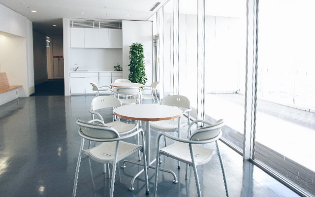 仕事がはかどったら休憩スペースでちょっと一息。自動販売機があるので、飲み物を飲んでリフレッシュする人も。