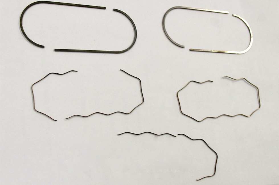 なお、自己張力タイプにしても、長円形を直線部の真んなかで切った2分割型(U型)や、半円部寄りのところで切った2分割型(J型)、2カ所の直線部と2カ所の半円部で切った4分割型、2カ所の直線部の真んなかと2カ所の半円部の真んなかで切った4分割型など、さまざまなものが作られテストされた。しかし、どれも不十分であり、一体型の自己張力タイプが圧縮リングには最善という結論を得た。こうした長円形ピストンリングの開発は、取引先の献身的な努力があったからこそ成立したものであった。