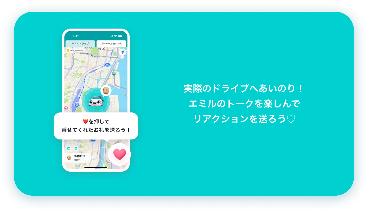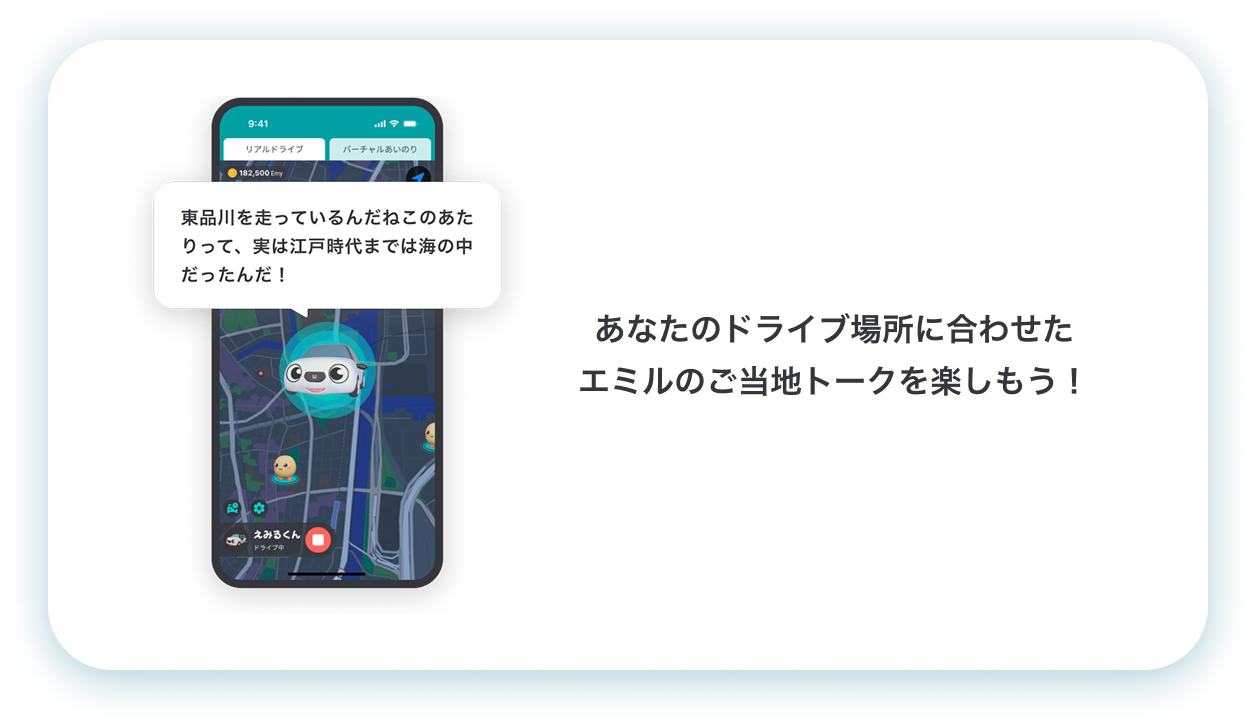AIで喋る相棒やバーチャルあいのりで、新しいドライブ体験ができるアプリです