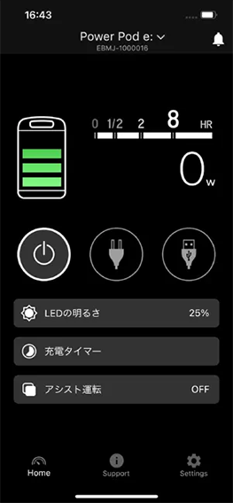 ホンダ製のBluetooth®機能を搭載した蓄電機とスマートフォンを接続するアプリケーションです。 アプリでは、以下のような便利な機能を利用できます。