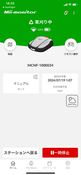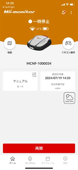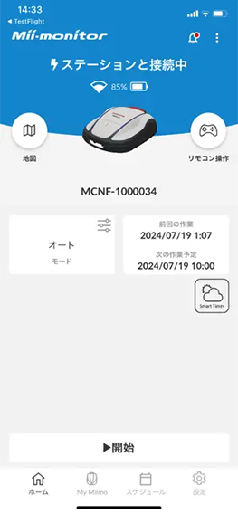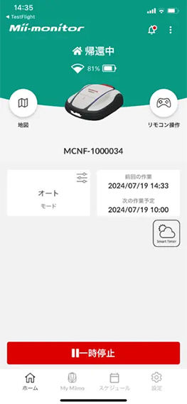 Bluetooth接続に加え、セルラー通信を用い、自宅、オフィスなど、世界中のどこからでもお客様のMiimo に接続できます。 リモート接続、GPS 追跡、天候ベースのスマート タイマーにより、Miimo の作業管理がより簡単になります。
