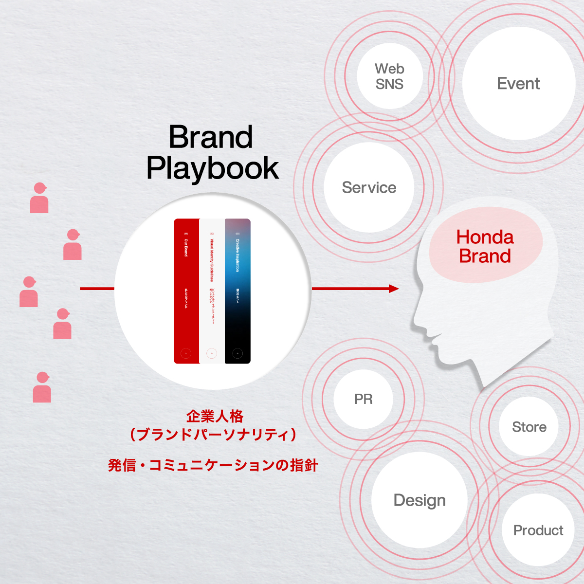 企画、言葉選び、イメージ選びなどに、Hondaとしての価値ある一貫性がもたらされることを狙っています。
