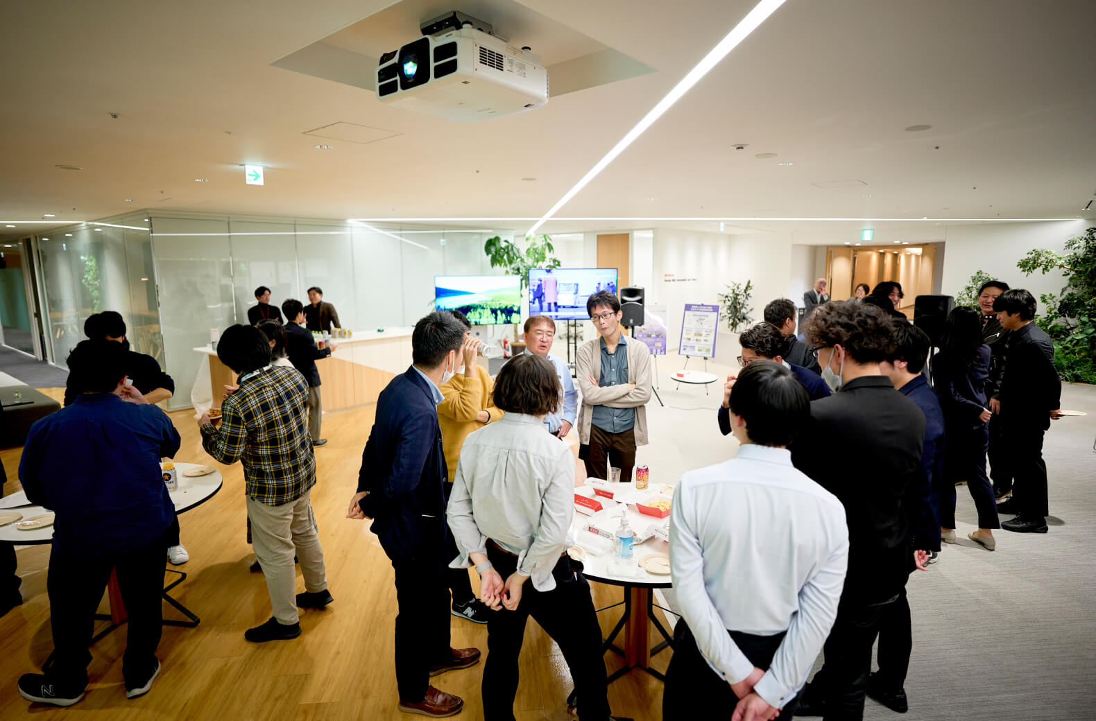 そして、ワイガヤ終了後は、全参加者が集う懇親会へ。それぞれのグループで語り合った内容をさらに深めたり、新たな技術談義が始まったり、話は尽きない様子でした。