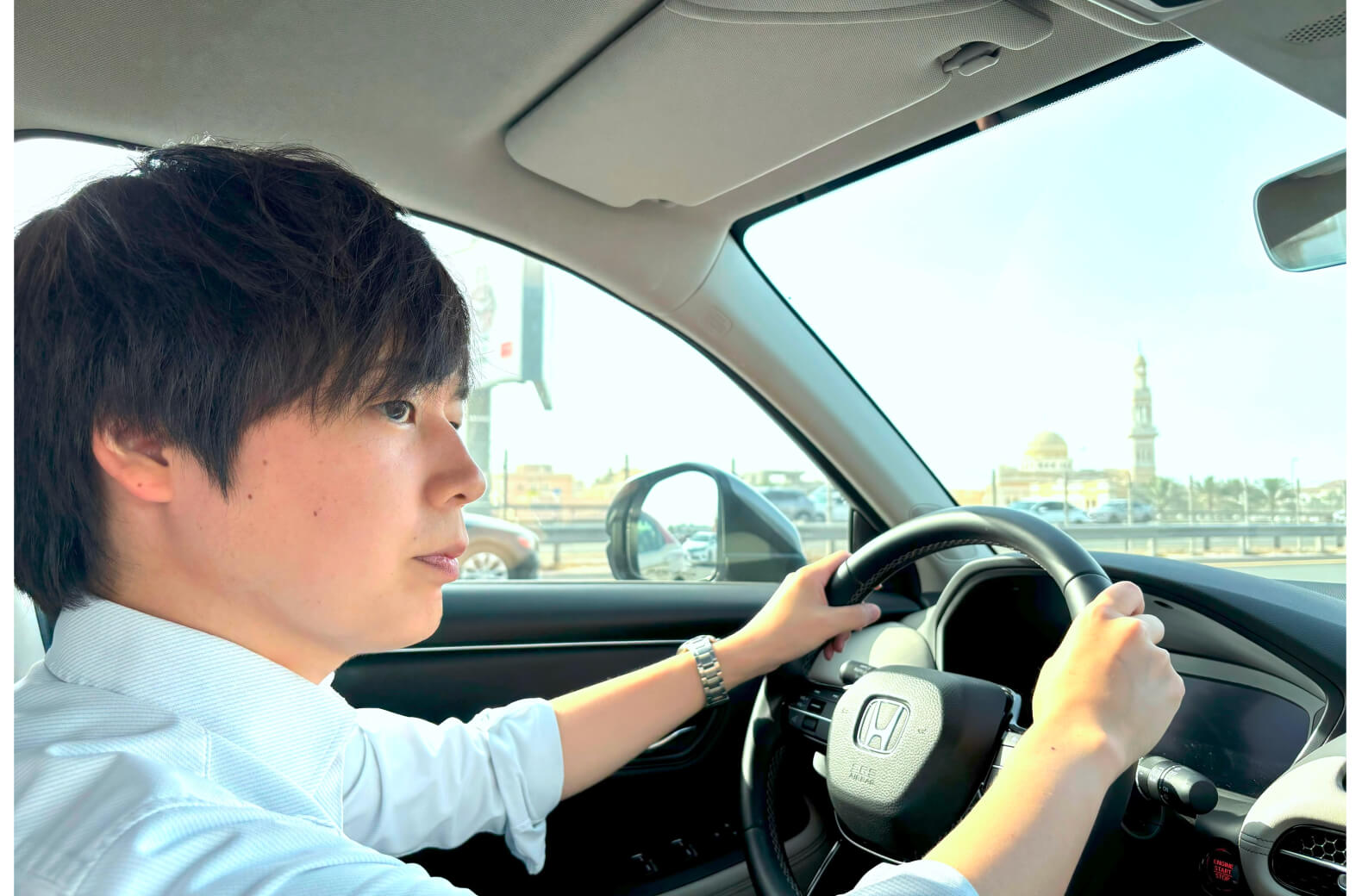 2023年4月からアラブ首長国連邦 (UAE) のドバイに駐在し、アフリカ・中東の現地事業支援やコネクテッドカーのプロジェクトリードなどを担っている宇髙。「二つの異なる市場特性を経験できる環境に、やりがいとおもしろさを感じている」と話します。若手ながらグローバルに活躍する宇髙が感じる仕事の醍醐味、Hondaの魅力を語ります。