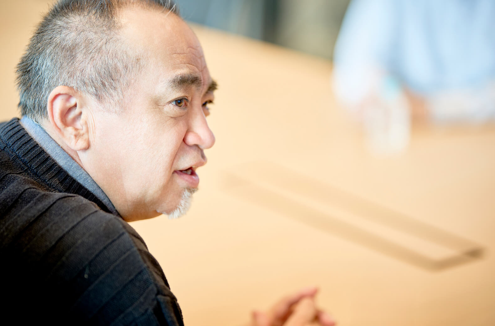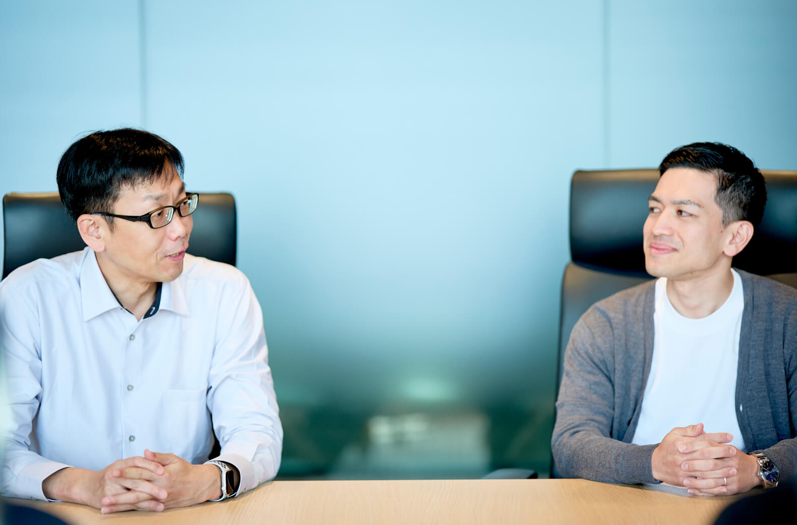 たとえば、今私たちがいる会議室のテーブルは、初めて会うお客様とコミュニケーションをとる上で最適な幅にしています。近すぎるとかえってバリアを張ってしまうし、遠すぎると距離を感じてしまう。話しかけやすさというのは、環境に左右されることが大きいんです。だから、話しかけやすくなるポイントを、スタジオのなかにたくさん散りばめています」