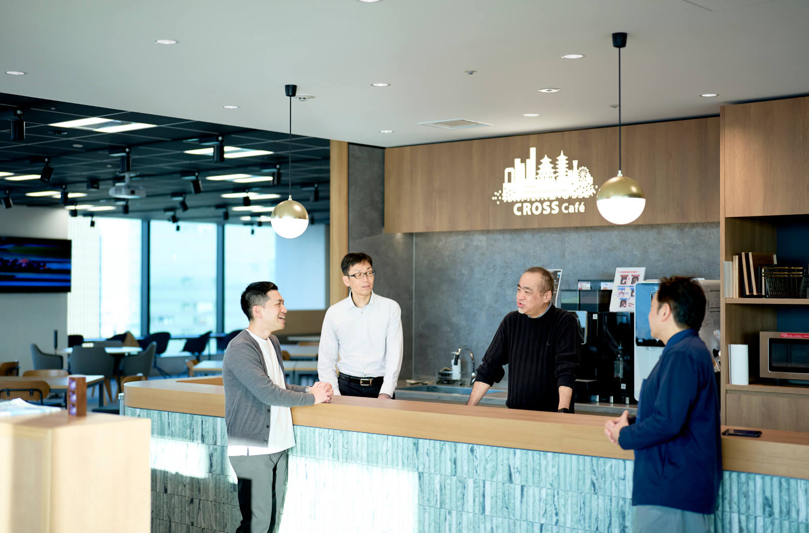 スタジオ内には、さまざまなところにコミュニケーションを促す仕掛けがあります。たとえば、鈴木がお気に入りの場所として挙げる「CROSS Cafe」。その名の通り、ふとした会話が交差してアイデアが生まれることも。また、スタジオ全体の開放感のある雰囲気もコミュニケーションを後押ししていると言います。