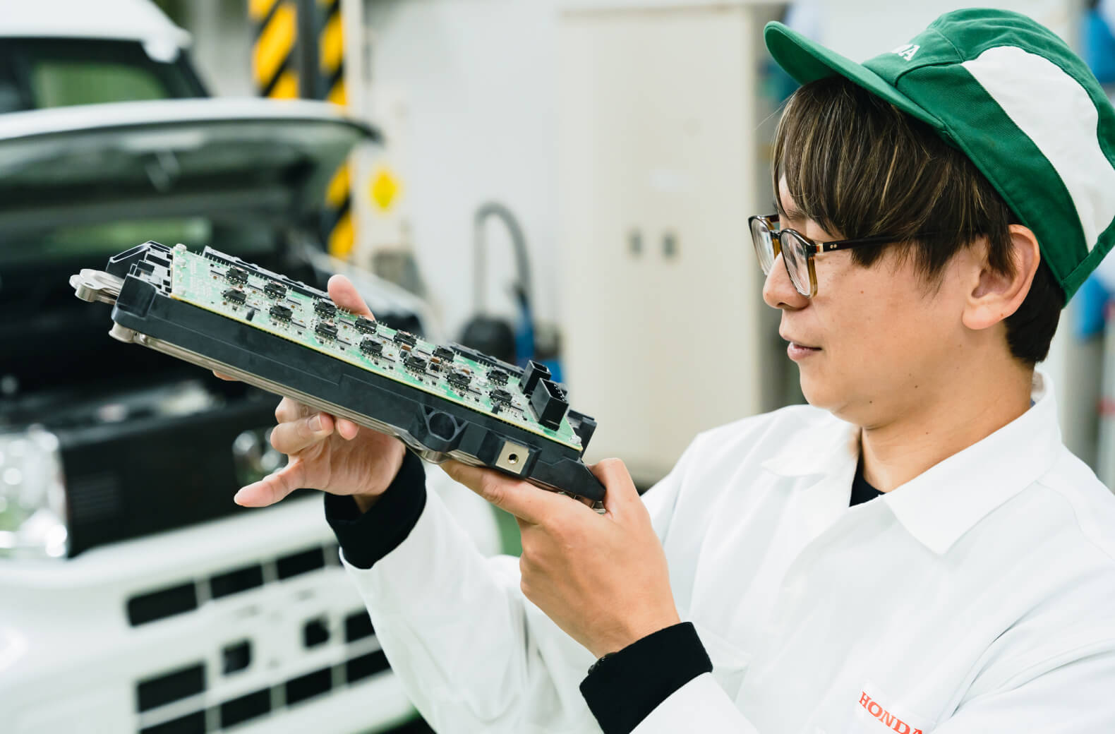 大手電機メーカーで家電や車載向けのコンデンサ開発やクルマの駆動用インバーターの研究開発に従事。2020年Hondaにキャリア入社。FCEV(燃料電池自動車)やBEVのインバーター開発などを経て、現在は電動戦略構築に向けたパワーエレクトロニクス技術の先行研究や戦略検討を担当。