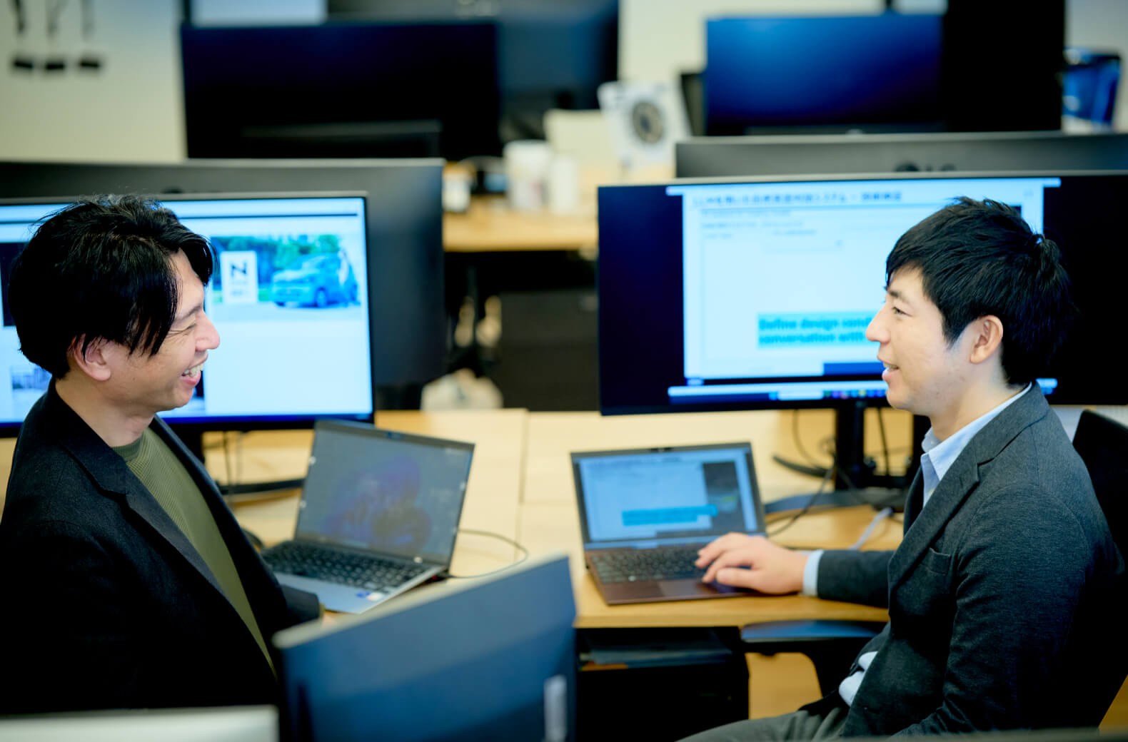 管理職としてプロジェクト全体をバックアップしてきた伊藤と、AI技術の開発に取り組んだ片桐。ふたりは現在、AIの研究開発や全社でのAI活用推進を行う部署に所属していますが、それぞれクルマの研究開発に携わってきたキャリアがあります。