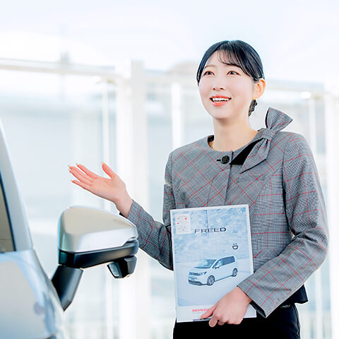 人の生活と密接に関わり、快適に暮らしていくために欠かせないもの、将来はそのような商品を取り扱う仕事に就きたいと考えていたときに、頭に浮かんだのが自動車業界でした。安心で安全なカーライフをお客様に提供し、そして自分が売ったクルマでたくさんの楽しい思い出をつくってほしい。そんな想いがきっかけとなり、営業としてHonda Carsに就職しました。