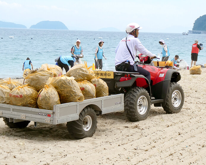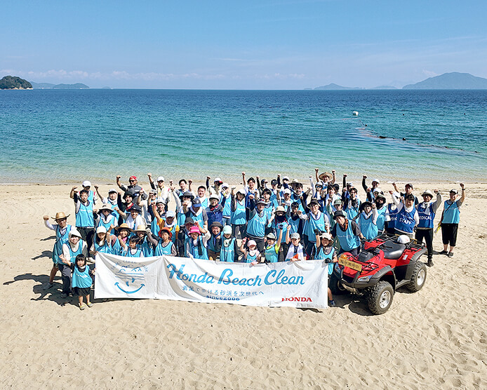 Hondaの2050年ビジョンのもと、販売会社では交通安全教室やビーチクリーン活動といった活動を行っています。