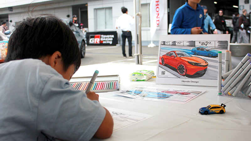 Honda DesignMOTOR FAN FEST 2025 塗り絵体験クルマ「モーターファンフェスタ2025 in 富士スピードウェイ」Hondaブースにて「デザイナーとの塗り絵体験」を実施。今回の塗り絵をデザインしたカーデザイナーとの交流を通じ多くのご家族に塗り絵を楽しんで頂きました。