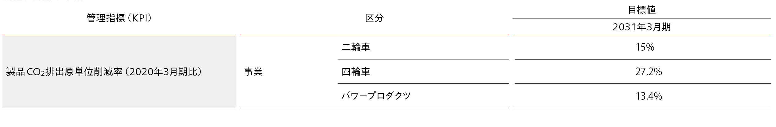 また短中期的には、引き続き内燃機関搭載製品の販売を計画していることから、二輪・四輪・パワープロダクツ製品の環境性能向上にも継続的に取り組み、足元のCO₂排出削減を推進していきます。