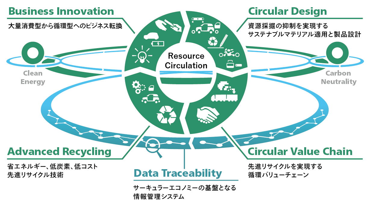 そしてそれらを実現する革新技術の仕込みになると考え、大量消費型から循環型への「ビジネス変革」も見据えて取り組んでいます。