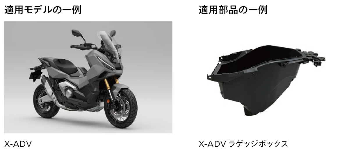 新たに設計最適化を行うことで、これまで二輪車への適用が難しかった四輪のバンパーリサイクル材を、2024年に販売したNCシリーズ※のラゲッジボックスなどに適用しました。