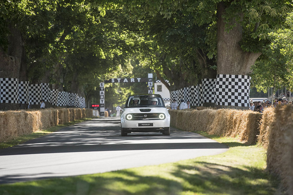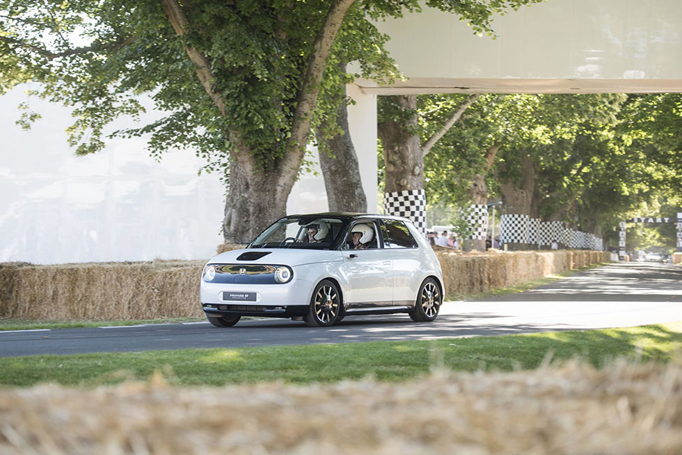 グッドウッドのヒルクライムはHonda eプロトタイプが意図している走行環境ではありませんが、その力強いモーターと後輪駆動による走りは集まった人々の注目を集めました。環境に優しいだけでなく、走りの楽しさの実現を目指したクルマなのです。