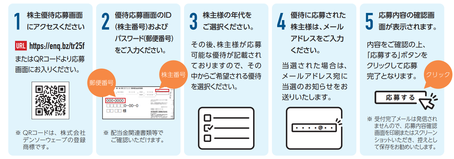 当選者には、メールにて当選のお知らせや優待の詳細をご案内いたします。