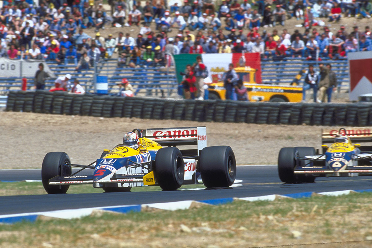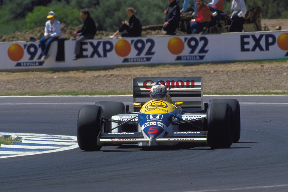 シーズン開幕を迎えたウィリアムズホンダは、代表不在の危機感がチームを引き締めたのか、シーズン序盤を順調にスタートした。開幕戦ブラジルGPでピケが勝利を飾り、第2戦スペインGPではマンセルがアイルトン・セナ(ロータス・ルノー)との激闘の末に僅差の2位を獲得。モナコGPの後に行われたテストで、かつてのチームメイトであるエリオ・デ・アンジェリスが事故死し、マンセルは精神的に大きなダメージを受けたが、第5戦ベルギーGPからマンセルの快進撃が続く。第5戦、第6戦、第8戦、第9戦と優勝したマンセルはドライバーズ・ランキングのトップに踊り出たのである。