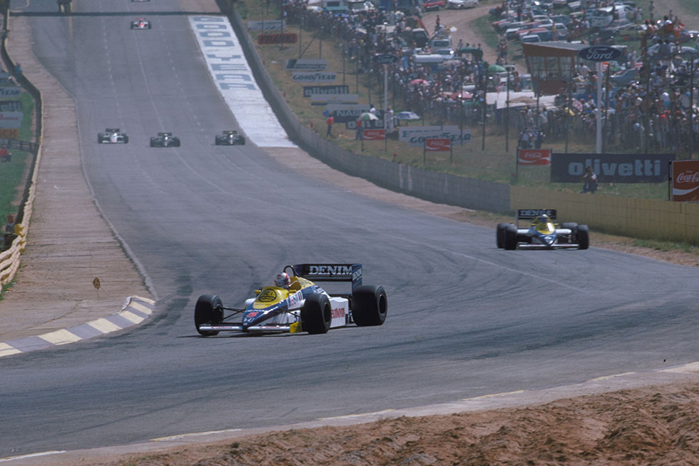 標高1520mにあるキャラミ・グランプリサーキットに合わせHondaエンジニアたちは事前に高地対策を施し、予選は順当にマンセルがポールポジションを奪った。彼にとってキャリア2回目の予選トップだった。しかし、ネルソン・ピケ(ブラバム・BMW)とケケ・ロズベルグ(ウィリアムズホンダ)が0.14秒以内で続く僅差。F1ターボエンジンは予選仕様で実に1500馬力を記録していた時代で、この南アフリカGPでも最高速はブラバム・BMWが341km/h、ウィリアムズホンダが334km/hとその他ライバル勢を圧倒した。決勝ではもちろんブーストを下げ、220ℓ燃料制限を考慮してのレース展開となる。決勝日は猛暑に見舞われ、レース中のタイヤ交換は必須と予想された。