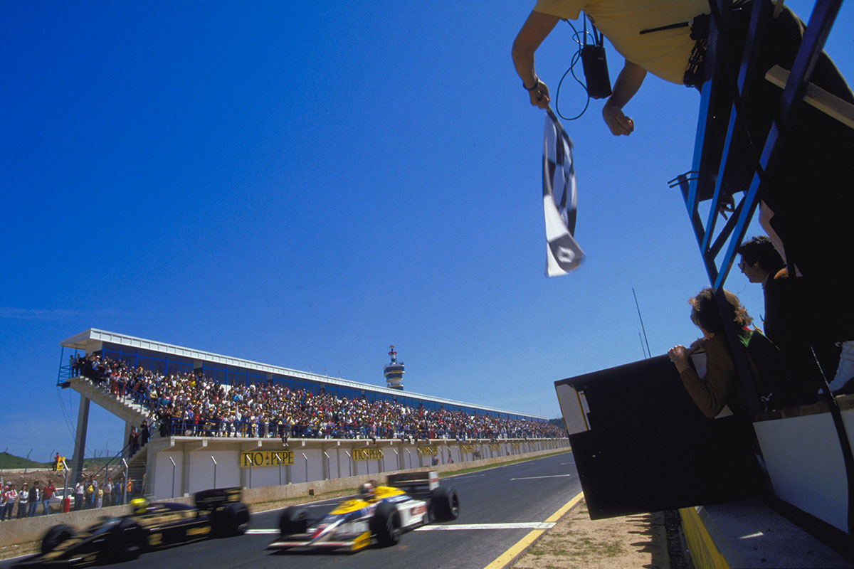 なんとかトップを死守していたセナだったが、タイヤが限界を迎えておりコースにとどまるのが精一杯という状況だった。最終ラップに入ったところでトップ2台の差は1.589秒。ヘアピン状の最終ターン16を立ち上がって最後のストレートに入り、アウト側ラインを目一杯使って立ち上がったセナの背後からマンセルがイン側に飛び出てチェッカー直前の加速合戦となった。ほぼ併走したところがフィニッシュラインで、横一線のサイド・バイ・サイドの末、その差0.014秒で勝ったのはセナだった。71年イタリアGP、モンツァでの有名な0.01秒差ゴールに匹敵する大接戦だった。自分が勝ったと思い込んでコクピットから降りたマンセルは「エッ? 」という表情を浮かべたが、やれることはやったという満足感からか、表彰台上でセナとマンセルの間は穏やかに、お互いの健闘を讃え合った。そしてマンセルは記者会見で入院中のフランク・ウイリアムズに対し「たぶんテレビを見ているよね。ごめんよ、あとほんの少しで勝てなかった。チームもHonda エンジンも素晴らしいから、次は必ず勝ってみせる」と熱いメッセージを送ったのだった。