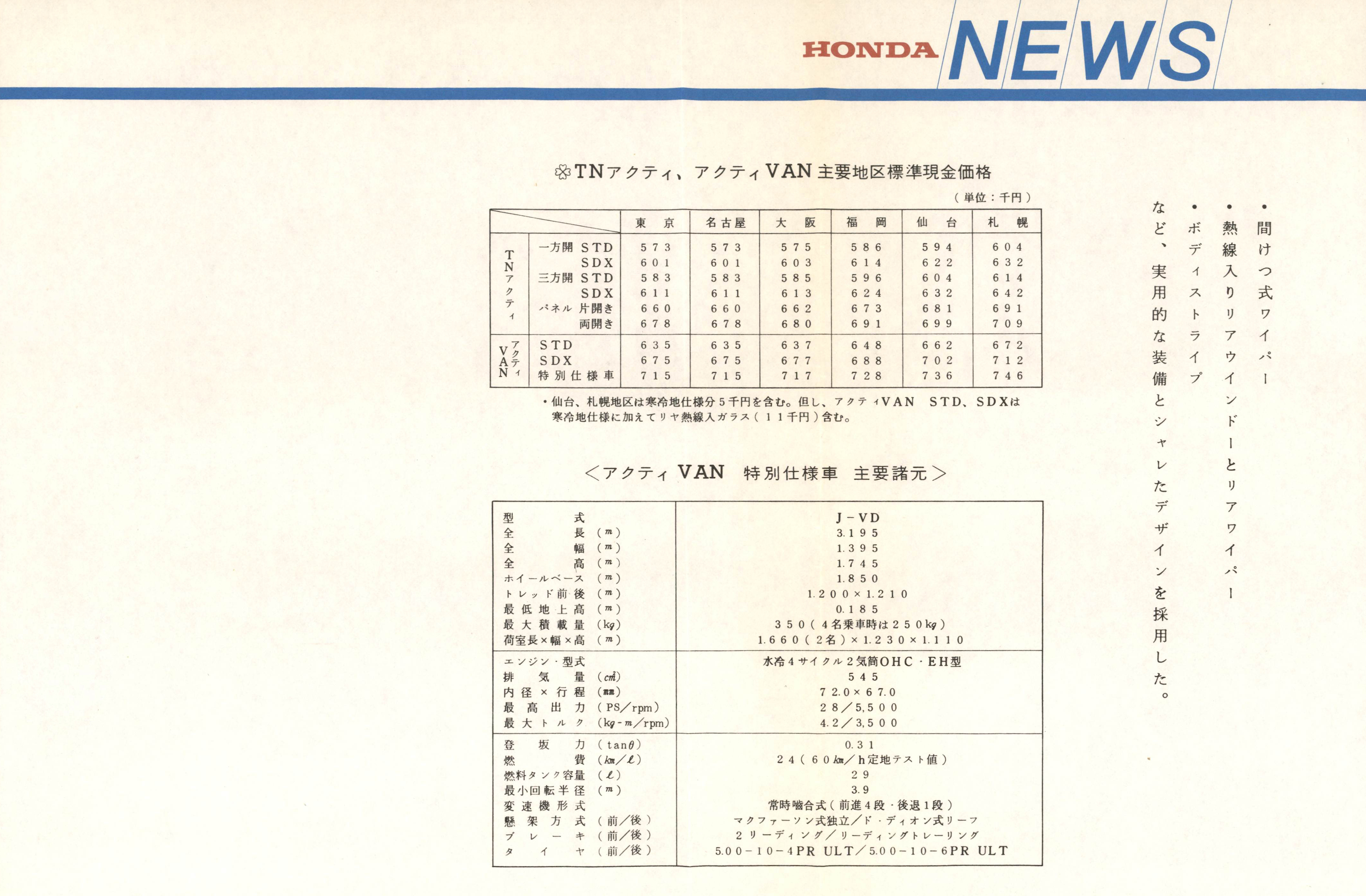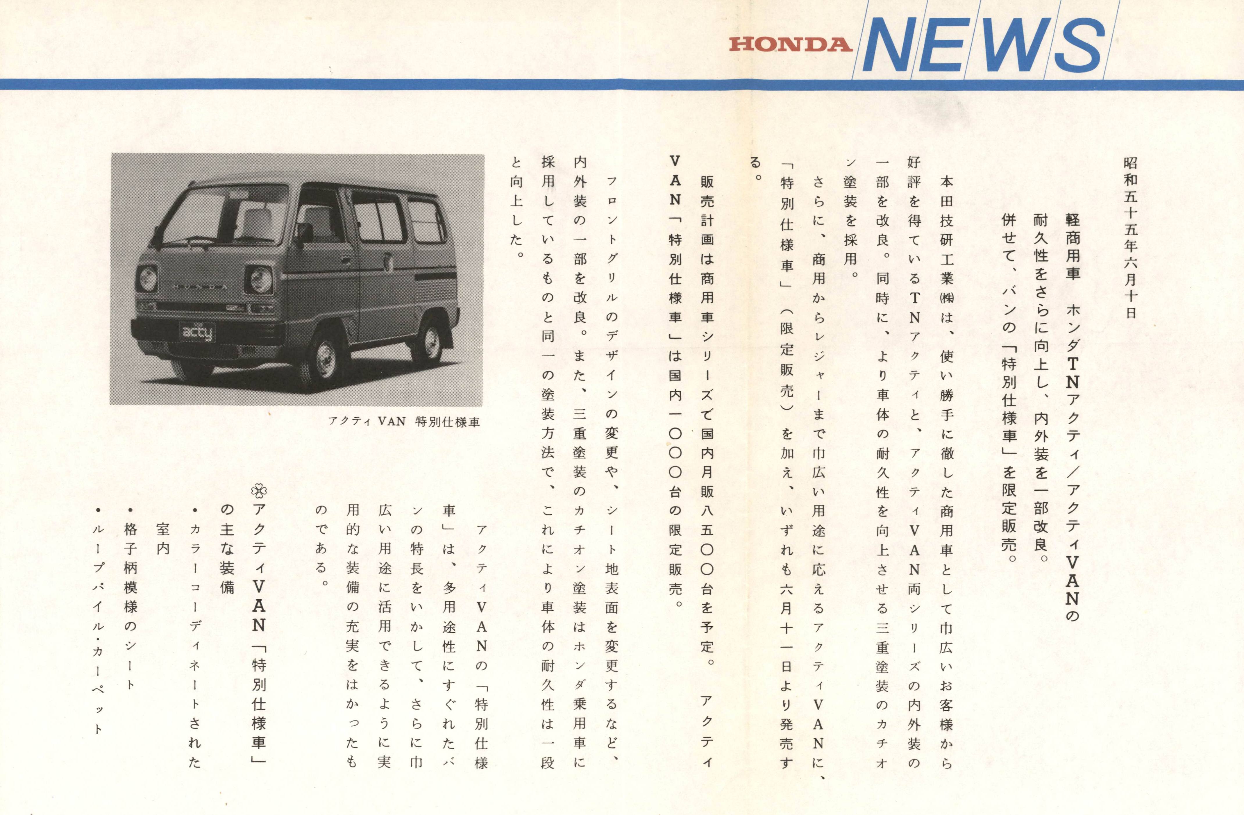 軽商用車ホンダTNアクティ/アクティVANの耐久性をさらに向上し、内外装を一部改良。併せて、バンの「特別仕様車」を限定販売