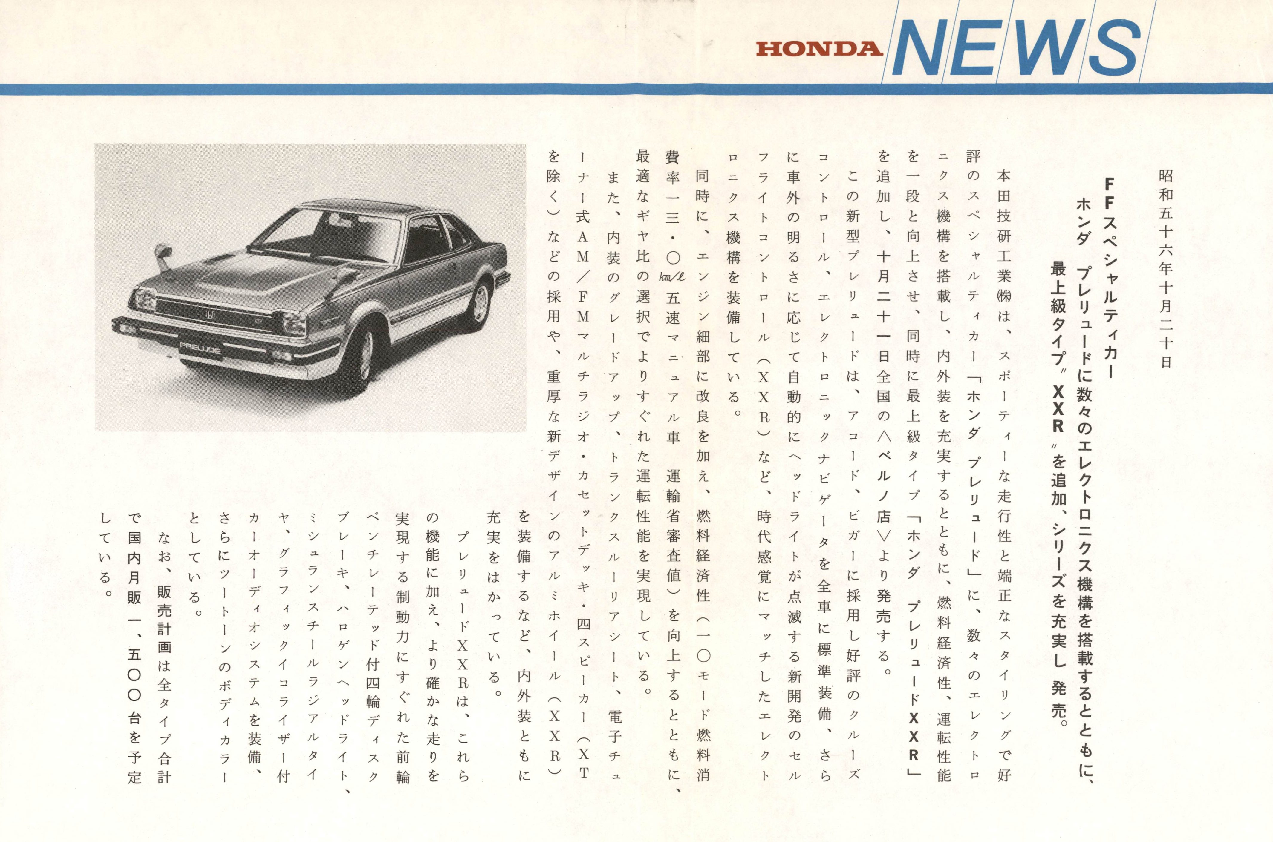 FFスペシャルティカーホンダプレリュードに数々のエレクトロニクス機構を搭載するとともに、最上級タイプ“XXR”を追加、シリーズを充実し発売