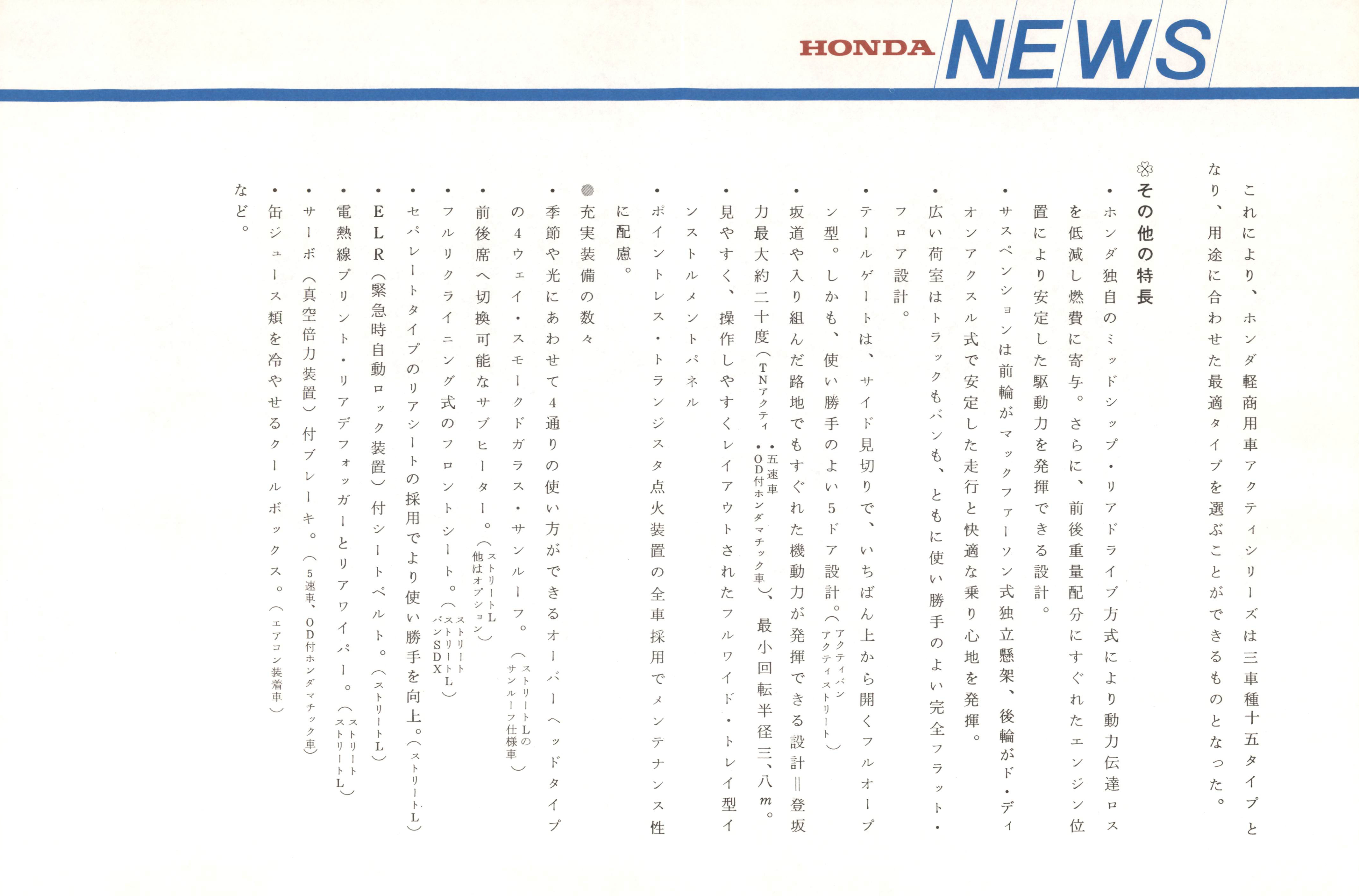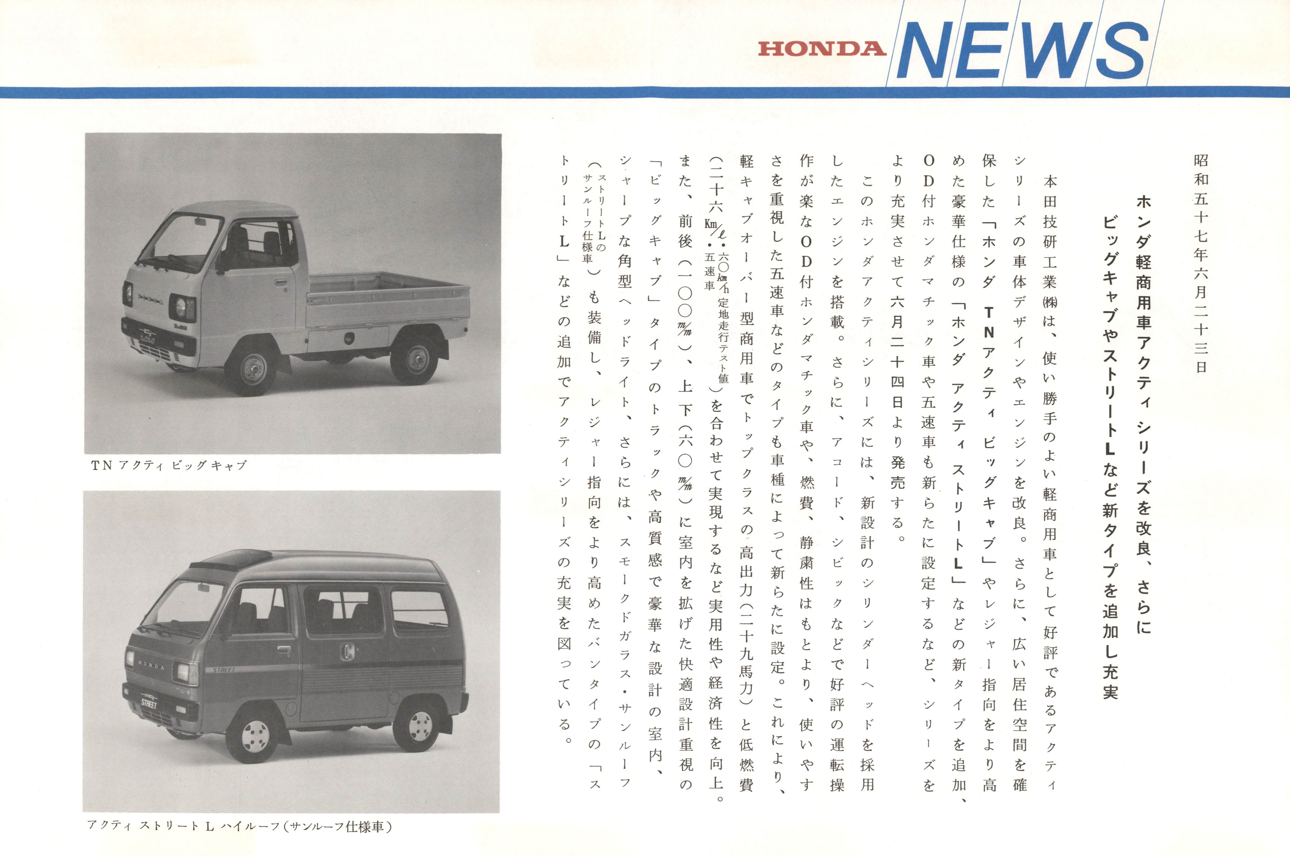 ホンダ軽商用車アクティシリーズを改良、さらにビッグキャブやストリートLなど新タイプを追加し充実