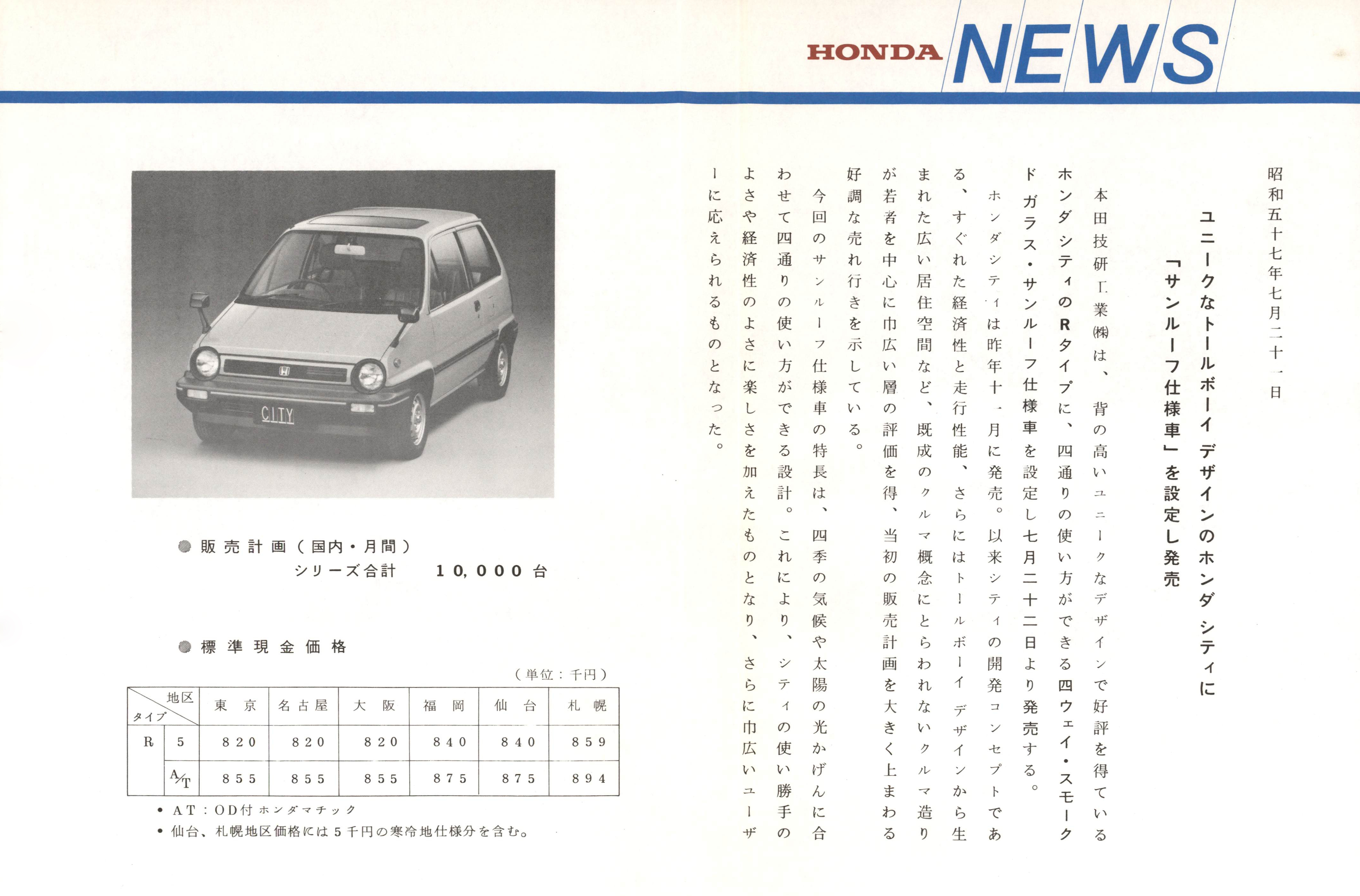 ユニークなトールボーイデザインのホンダシティに「サンルーフ仕様車」を設定し発売