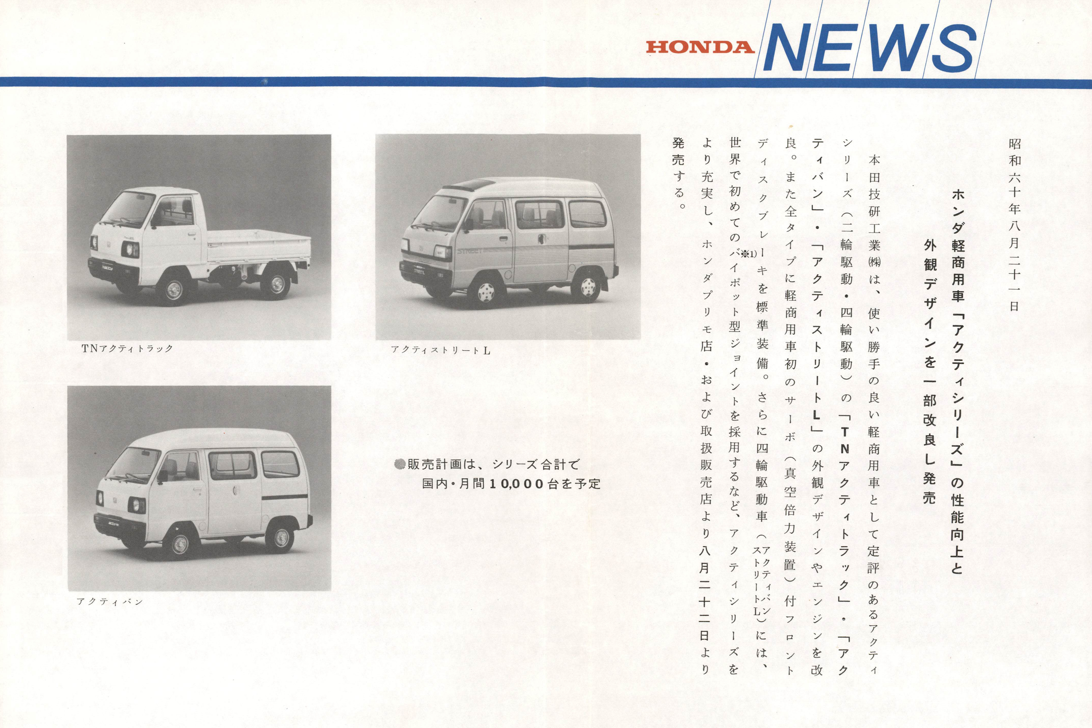ホンダ軽商用車「アクティシリーズ」の性能向上と外観デザインを一部改良し発売