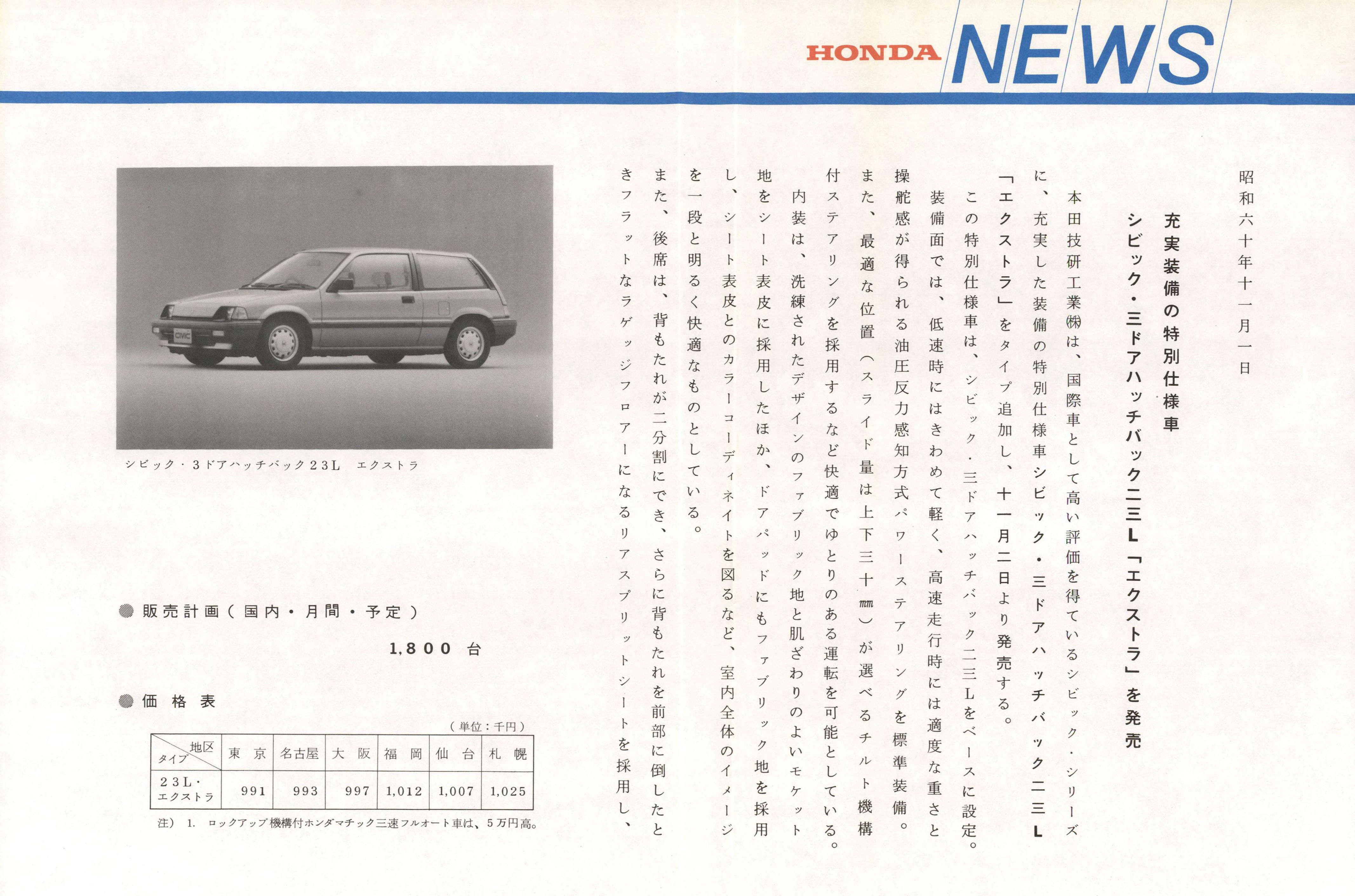 充実装備の特別仕様車シビック・三ドアハッチバック二三L「エクストラ」を発売