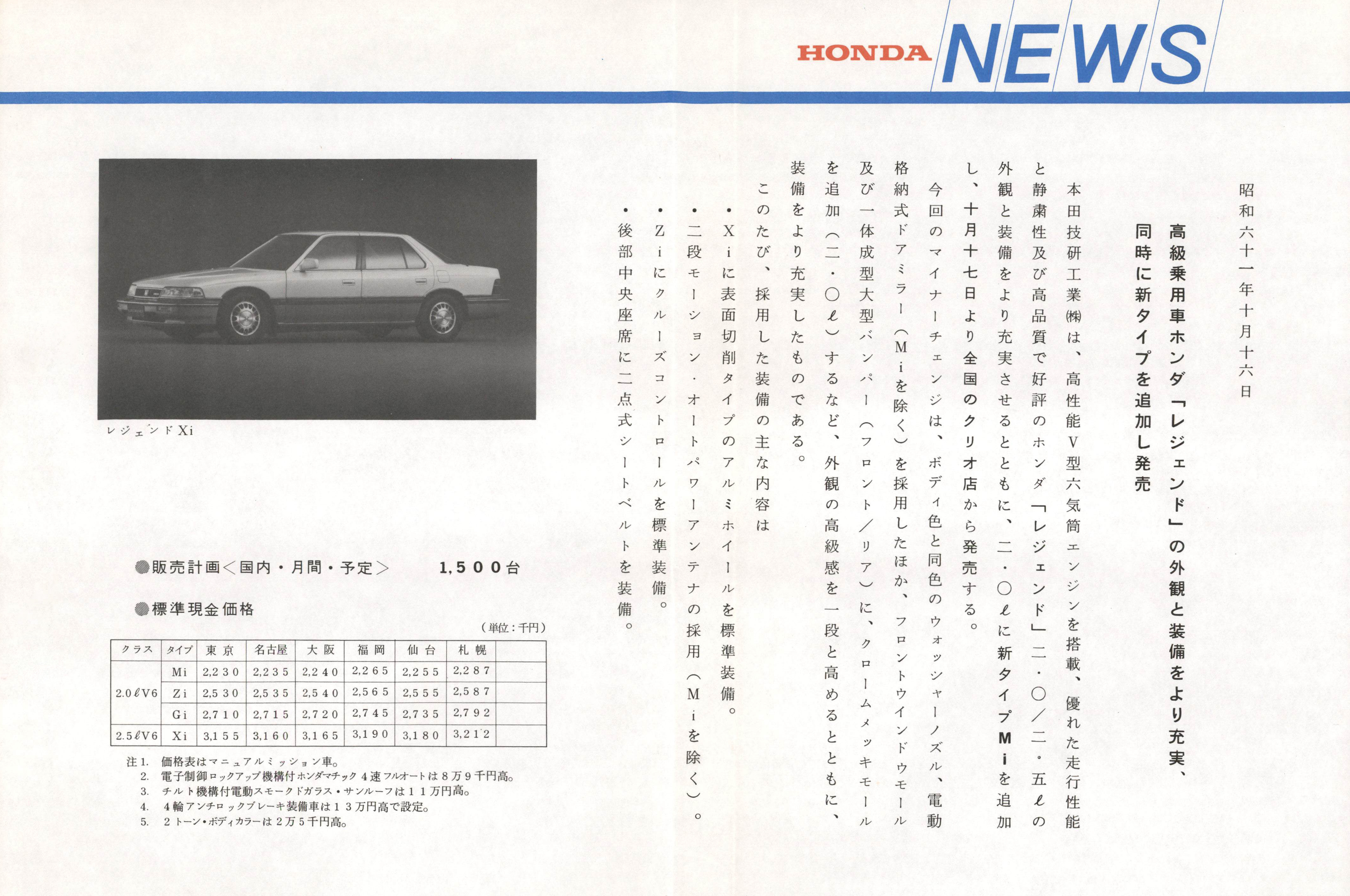 高級乗用車ホンダ「レジェンド」の外観と装備をより充実、同時に新タイプを追加し発売