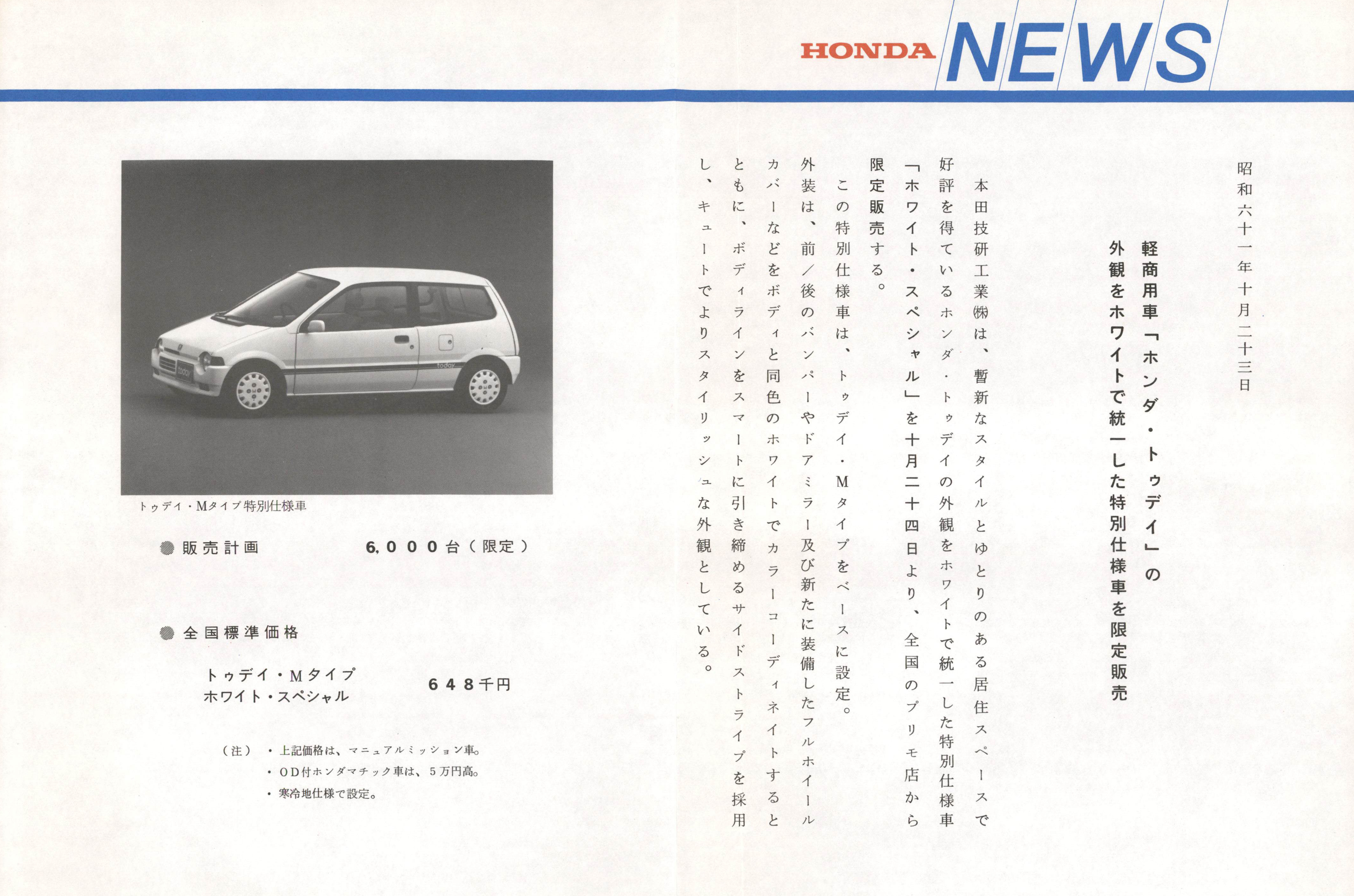 軽商用車「ホンダ・トゥデイ」の外観をホワイトで統一した特別仕様車を限定販売