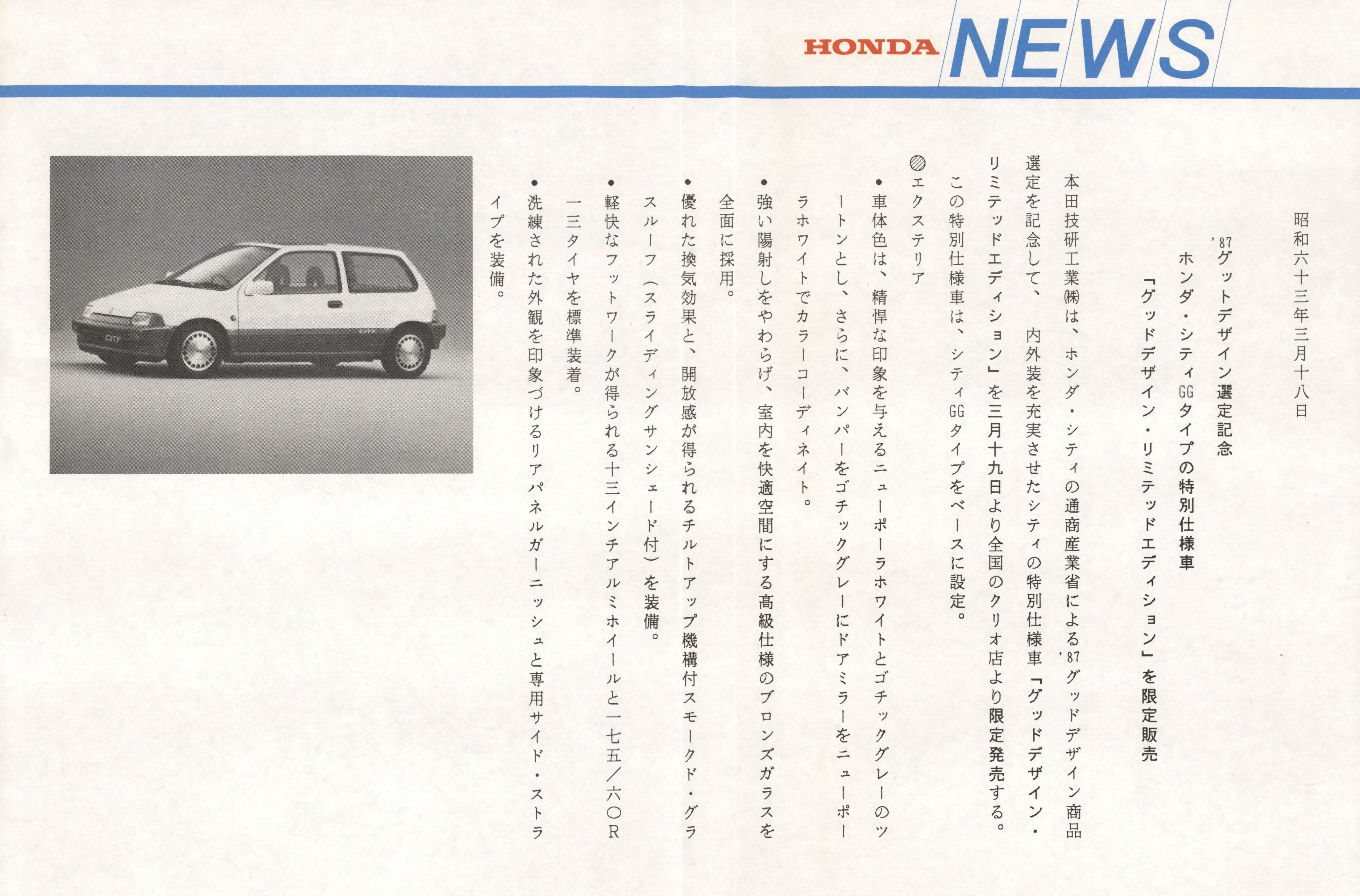 87グットデザイン選定記念ホンダ・シティGGタイプの特別仕様車「グッドデザイン・リミテッドエディション」を限定販売