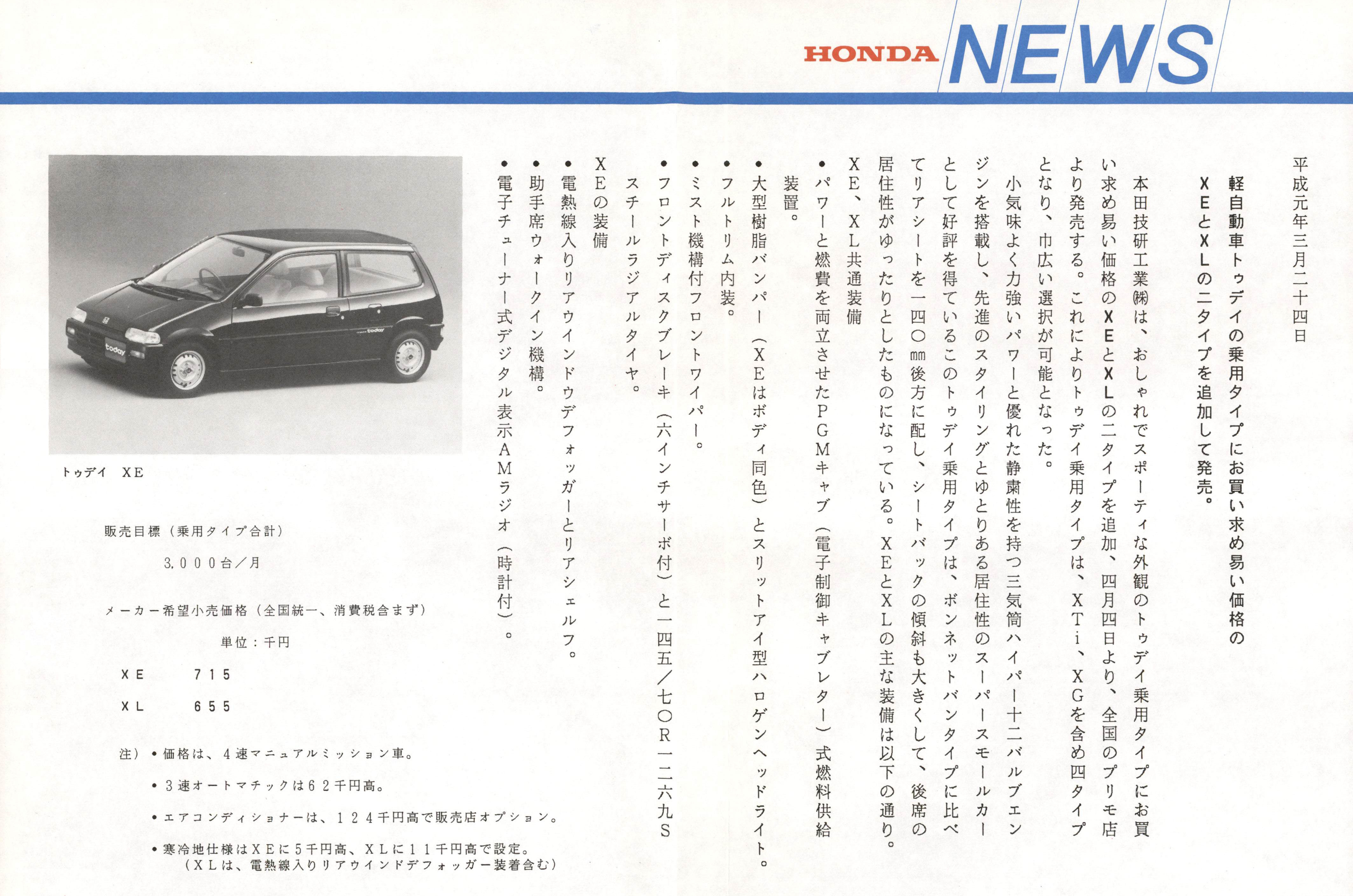 軽自動車トゥデイの乗用タイプにお買い求め易い価格のXEとXLの二タイプを追加して発売