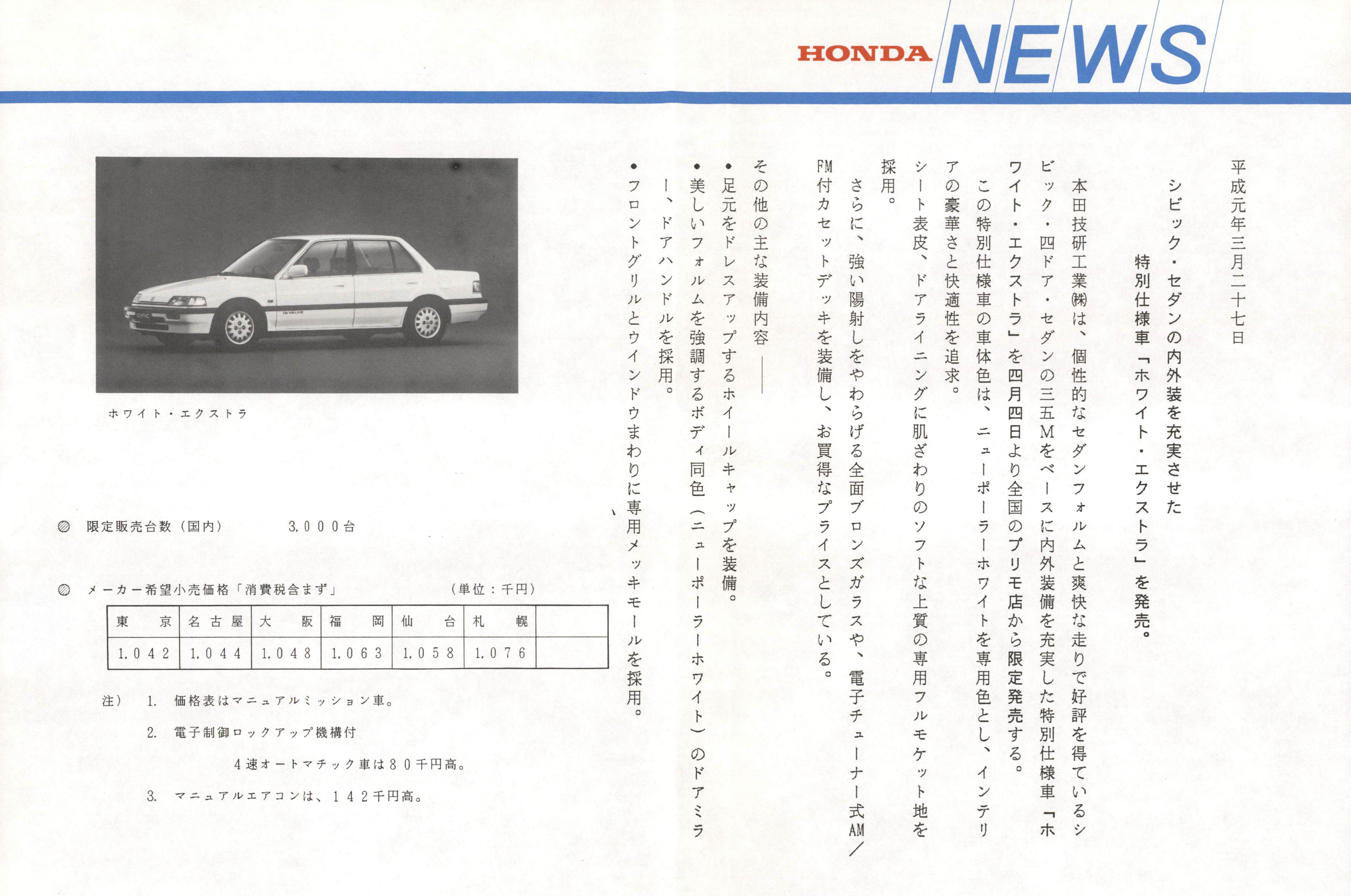 シビック・セダンの内外装を充実させた特別仕様車「ホワイト・エクストラ」を発売