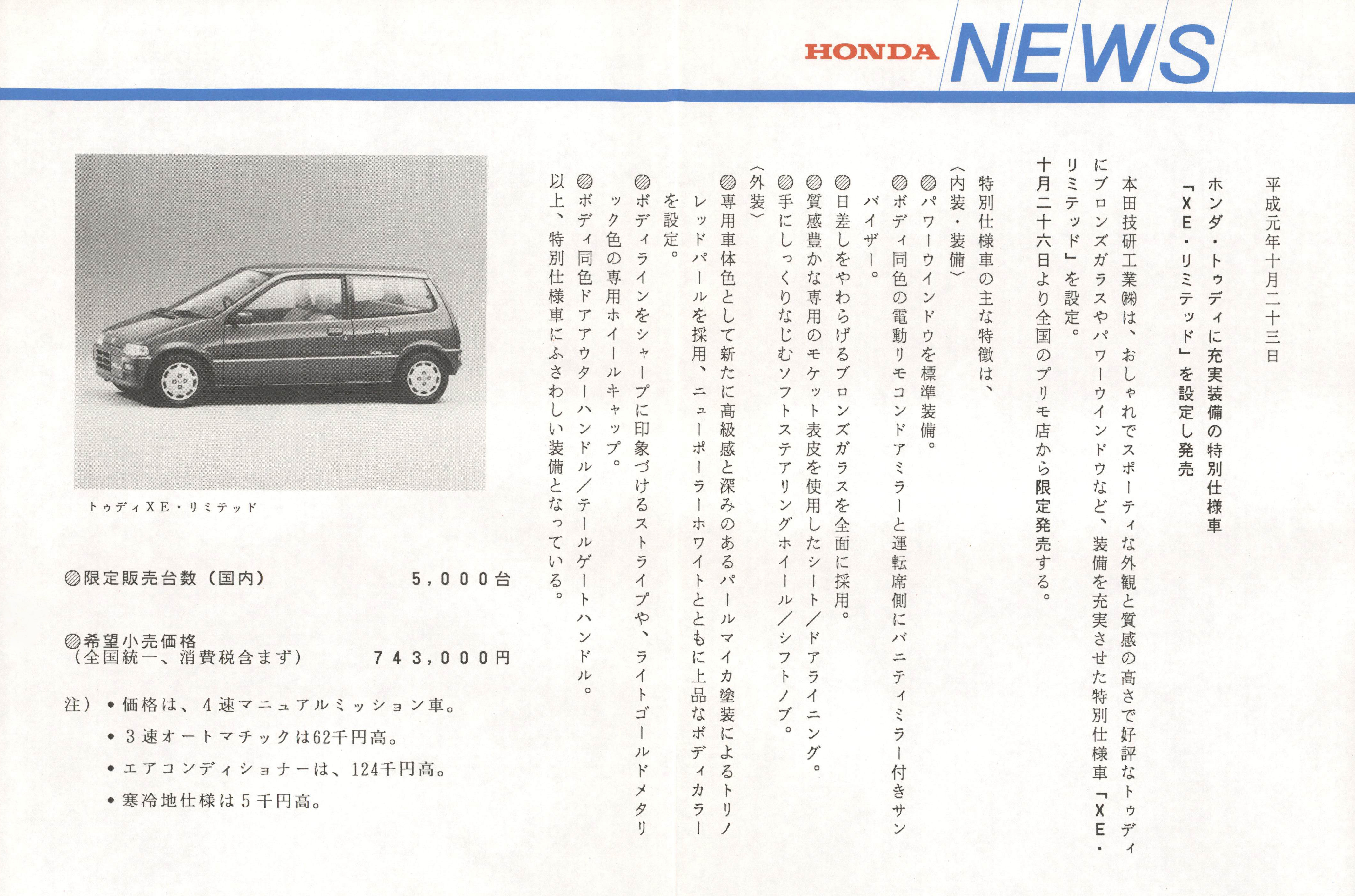ホンダ・トゥディに充実装備の特別仕様車「XE・リミテッド」を設定し発売