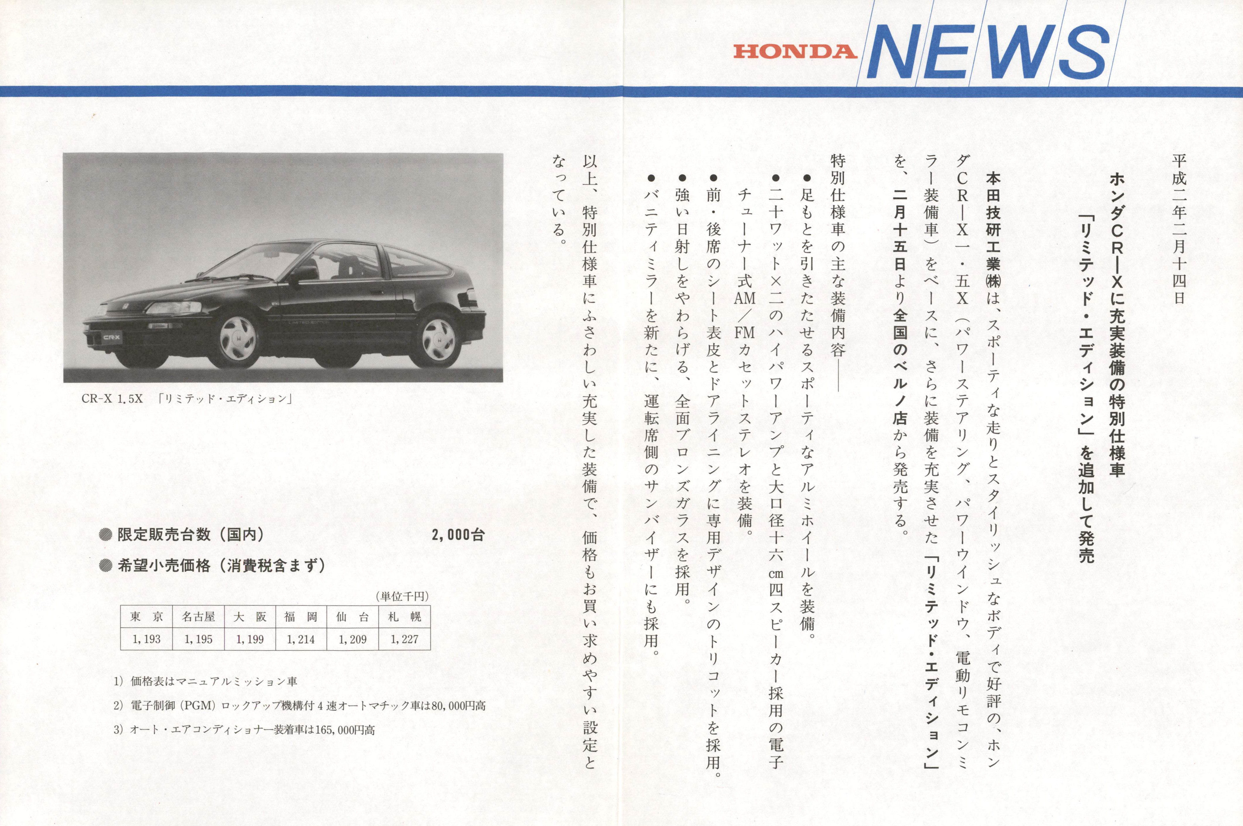 ホンダCR-Xに充実装備の特別仕様車「リミテッド・エディション」を追加して発売