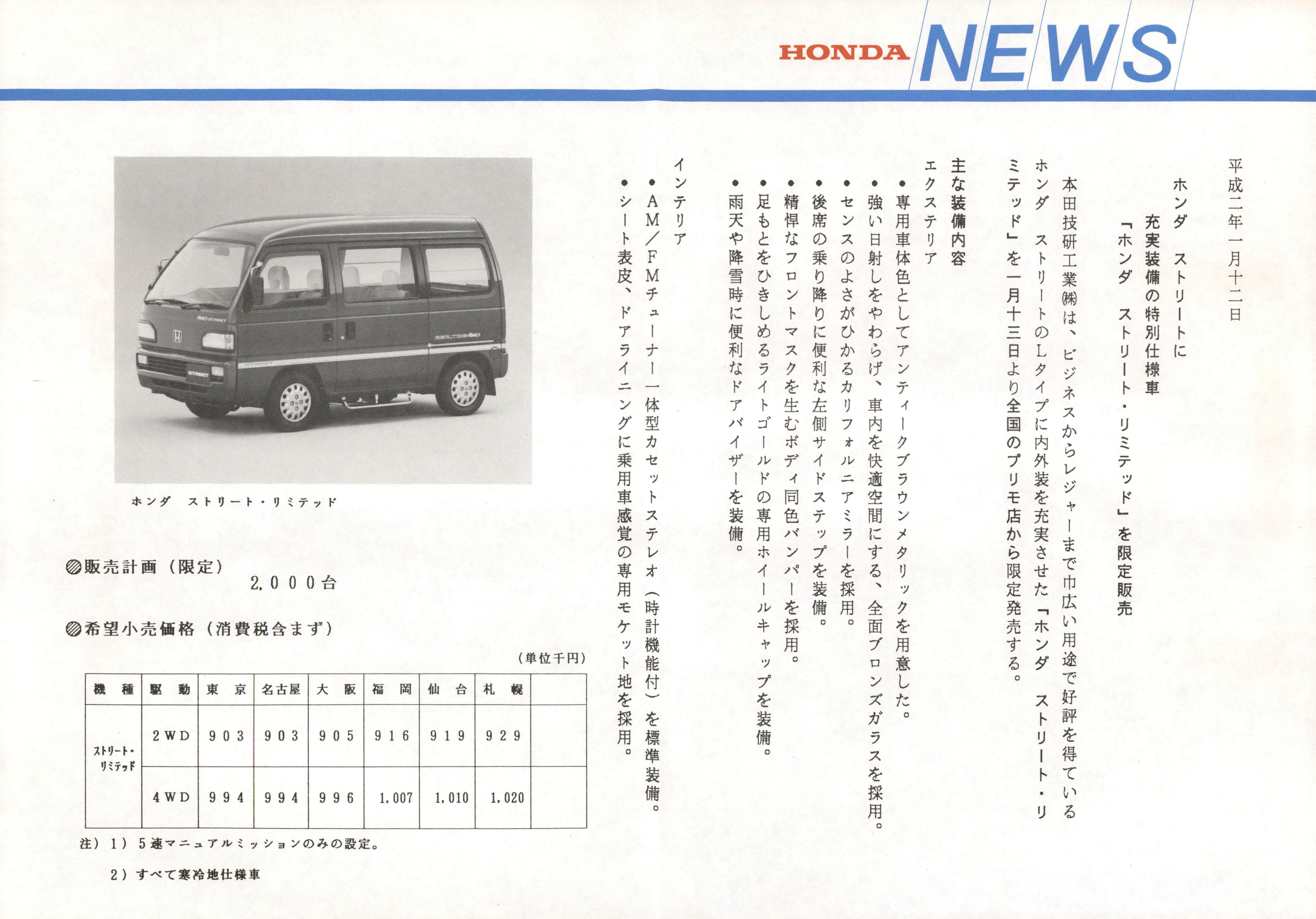 ホンダストリートに充実装備の特別仕様車「ホンダストリート・リミテッド」を限定販売