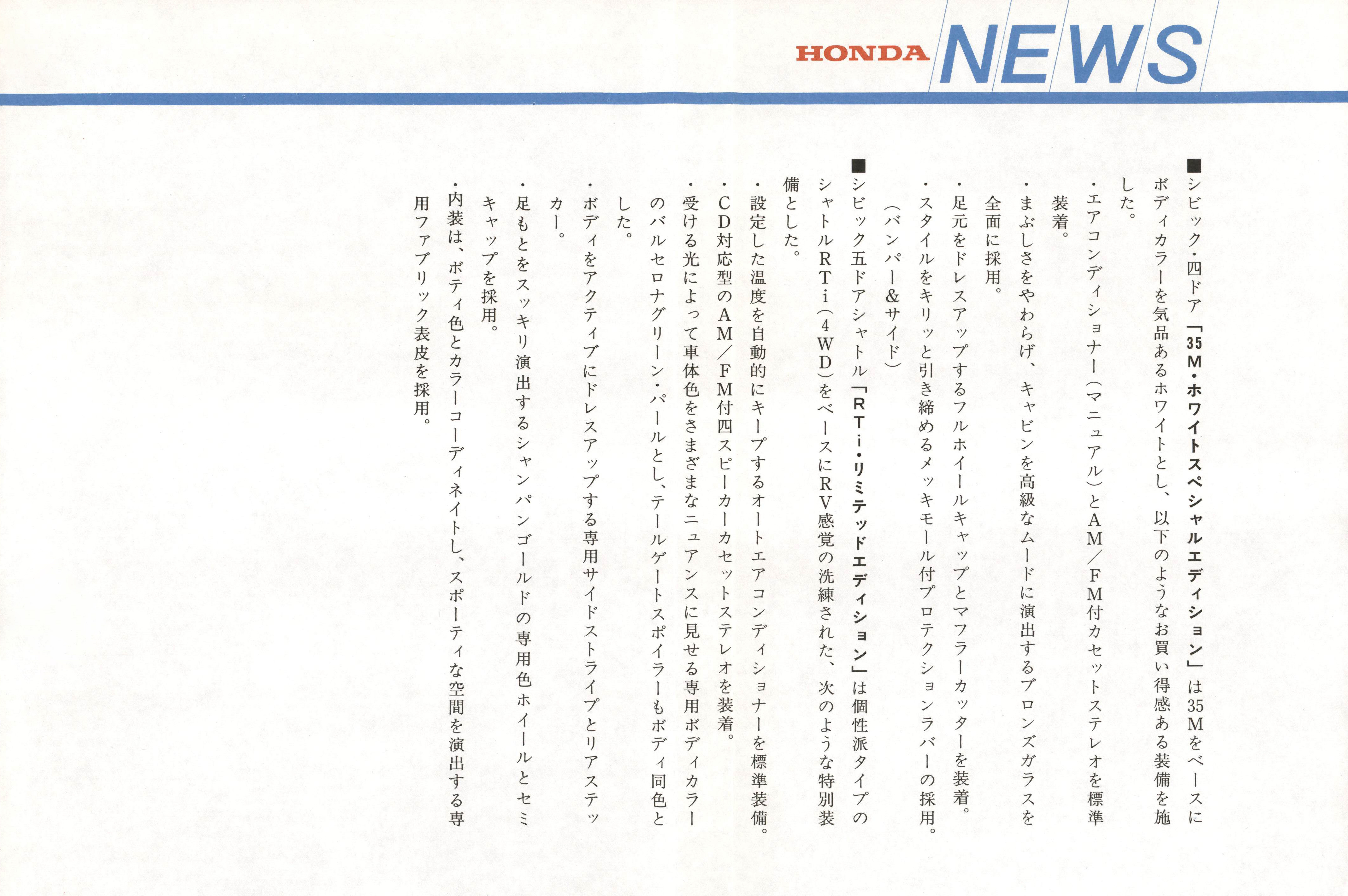 シビック三ドア・四ドアセダン・五ドアシャトルの各タイプに特別仕様車を設定し限定発売