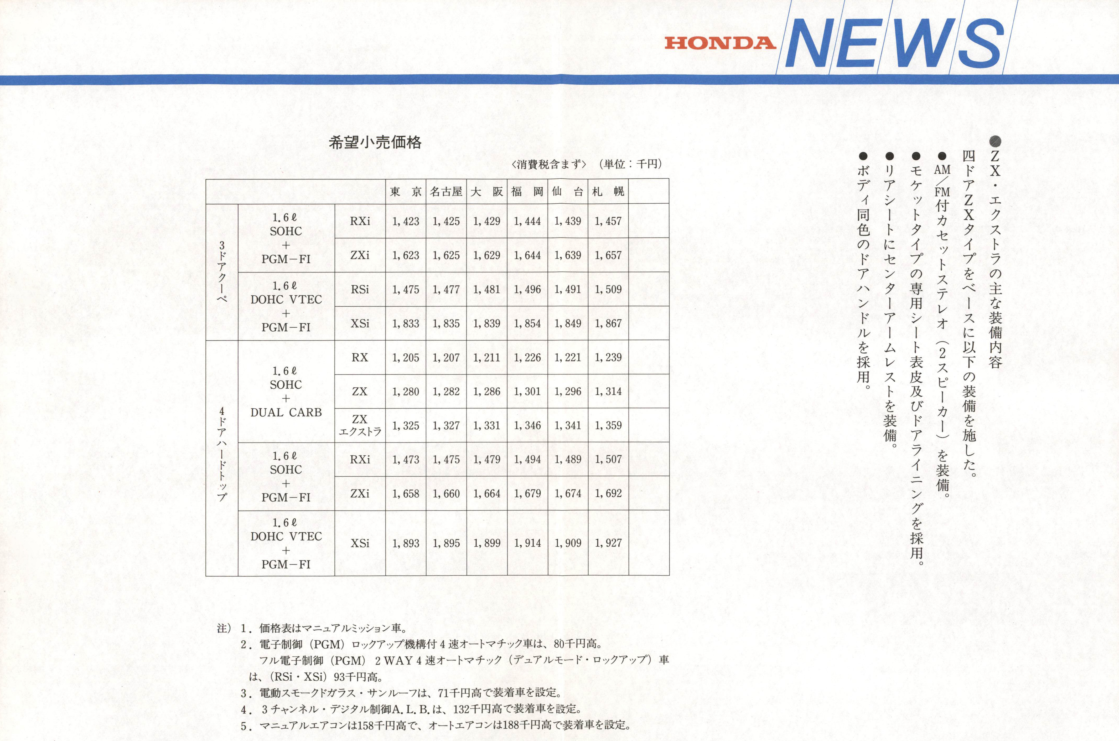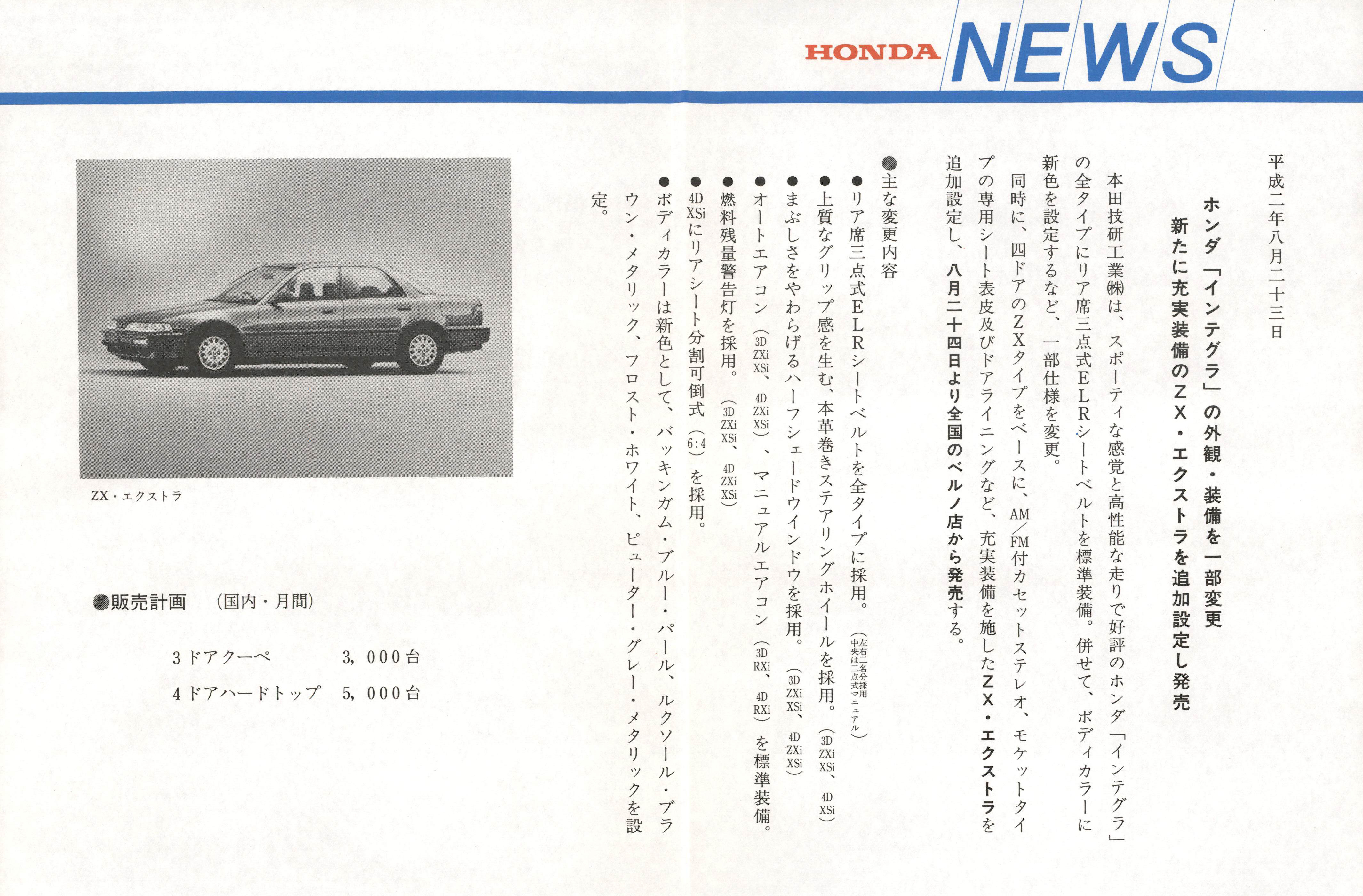 ホンダ「インテグラ」の外観・装備を一部変更新たに充実装備のZX・エクストラを追加設定し発売