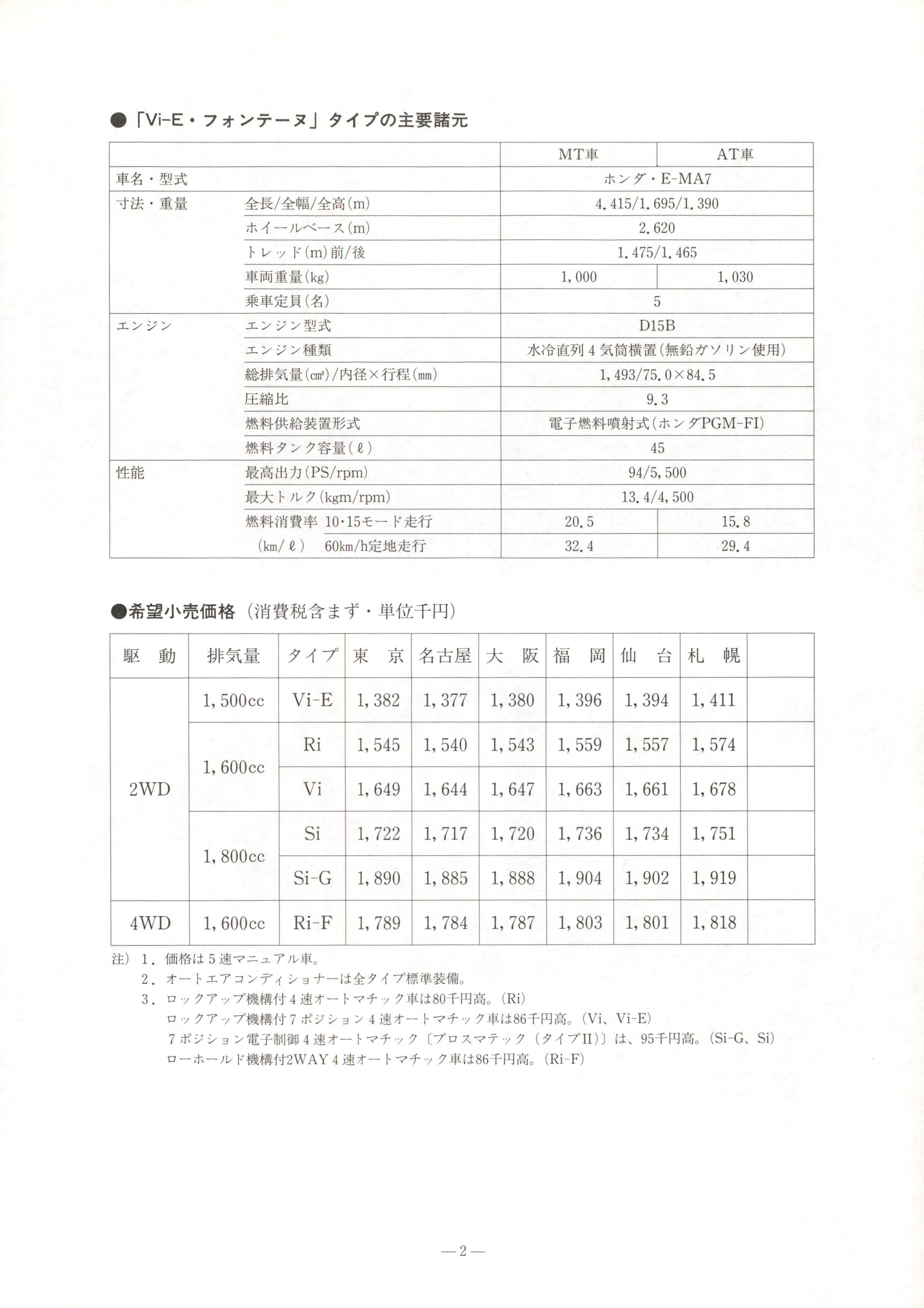 ��NPRESS INFORMATION1 9 9 4t^2g24�eNO�q��ʎ0Vi-E�0�0�0�0�0�0�00�0���RY0�0j0i0�0�0�0�0�0�0�0�0�0�0�0�0�0,g0u�bx�]mixSo00ؚD0�[hQ'`���0�_i�'`���0��BlW0_0qbD0�0Y0D0�0�0�0n0�0�0�0�0�0�0�0�00�0�0�0�00k00;ug�vj0NO�q���0�[�sW0_01.5�0�0�0�0VTEC-E�0�0�0�0�0-d �W0_00Vi-E" �0�0�0�0�0�00�0�0�0�0���R-��[0~0_001. 8 �0�0�0�0DOHC �0�0�0�0�0-d �W0_00Si0�0�0�0n0ň�P�0EQ�[U0[0�0j0i0�0�0�0�0�0�0�0�0W002g25�e�0�0hQ�Vn0�0�0�0�^K0�0zv�XY0�000Vi-E�0�0�0�0�0�0�00�0�0�0n0;Nj0yrw�o000;ug�vj0NO�q���0�[�sW0_01.5�0�0�0�0VTEC-E�0�0�0�0�0-d �W0010�015�0�0�0�q�e�m���s20.5km/ Q (5MTʎ ��0T�b01�1.5�0�0�0�0�0�0�0n0�V#uʎg0R�0f00K��-^(uSRS�0�0�0�0�0�0�0�0�0�0j�nň�PW00�RKb-^(u�0�0�0�0�0�0-��[00�0�0�0�0�0�0�0�0�0�0�0�0�0�0�0�0j�nň�P0Y0�0j0i00�0�0�0�0��H0_0Y0P0�0_0L}n'`0�[hQ'`0�_i�'`n0�[�s�0�0V0W0_00~0_000Si0�0o0X0�0h0Y0�0�0�0�0�0n0;Nj09eo��Q�[o0001. 8�0�0�0�0DOHC�0�0�0�0�0-d �W0_00Si0�0�0�0k00�RKb-^(uSRS�0�0�0�0�0�0�0�0�0�0�0�0�0�0�0-��[Y0�0j0i0�[hQk0M�na0~0_0�0�0�0�0�0�0�00�0�0�0�0�0n0�0�0�0�0�0�0�0�0�0�0��0�0�0�0�0�0�0_j�i�N ��0�e_0k0j�nň�PY0�0j0i0OD0�RKb�0TN084WDʎ0Ri-F0�0�0�0k00��ϑg0�S�0�VW0k0*Q�0_0�0�0�0�0�0�0�0�0�0�0�0�0�c(u0rx0���[�0NR��0�0�0�0Vi-E�0�0�0�0�0�0�00�V�Q���X�;u�Spe2, 0 0 0�S� g��-1-�0�0�0�0o0r0�RH0�0k00�0�01--�0�0�0�0W0�0f0�[hQK���%0Vi-E�0�0�0�0�0�0�00�0�0�0n0;N����CQMTʎATʎʎT�0�W_�0�0�0" E - MA7�[�l�0͑ghQw��hQE^�hQؚ(m) 4. 415/1. 695/1. 390�0�0�0�0�0�0�0(m) 2.620�0�0�0�0�m)MR��_1. 475/1. 465ʎ!N͑H\(kg) 1,000 1,030WNʎ�[���T � 5�0�0�0�0�0�0�0�0�W_D15B�0�0�0�0.z^�4l�Q�vR4lR{*jn�!q[��0�0�0�0O(u ��}�clIy�cm' ���Q�_ XL�z(mm) 1, 493/75, 0X 8 4,5'W.~�k9.3�q�e�Of}ňnb__��P[�q�etV\_��0�0�0PGM-FI)�q�e�0�0�0�[)�(Q) 45'`��gؚ�Q�R(PS/rpm) 94/5,500g'Y�0�0�0(kgm/rpm) 13.4/4,500�q�e�m���s10�015�0�0�0p�L�20.5 15. 8(km/ Q) 60km/h�[0Wp�L�32.4 29.4�%^g\�X�O<h��m��z+T~0Z0�0XSMOCS�Q �ƙ �R �clϑ �0�0�0 qg Lu�0T�SK\ 'Y *� �y �\ �N �0�0 -g L^1,500cc Vi-E 1,382 1,377 1,380 1,396 1,394 1,411Ri 1,545 1,540 1,543 1,559 1,557 1,5741,600cc2WD Vi 1,649 1,644 1,647 1,663 1,661 1,678Si 1,722 1,717 1,720 1,736 1,734 1,7511, 800ccSi-G 1,890 1,885 1,888 1,904 1,902 1,9194WD 1,600cc Ri-F 1,789 1,784 1,787 1,803 1,801 1,818�l � 1.�O<ho05��0�0�0�0�0SS02. �0�0�0�0�0�0�0�0�0�0�0�0�0o0hQ�0�0�0j�nň�P03.�0�0�0�0�0�0_j�i�N4��0�0�0�0�0�0�0ʎo080CS�Qؚ0(Ri)�0�0�0�0�0�0_j�i�N7�0�0�0�0�04��0�0�0�0�0�0�0ʎo086CS�Qؚ0(Vi0Vi-E)7�0�0�0�0�0��P[6R�_4��0�0�0�0�0�0�00�0�0�0�0�0�0�0��0�0�0II �0o0095CS�QԈ0(Si-G0Si)�0�0�0�0�0�0_j�i�N2WAY4��0�0�0�0�0�0�0ʎo086CS�Qؚ0(Ri-F)-2-