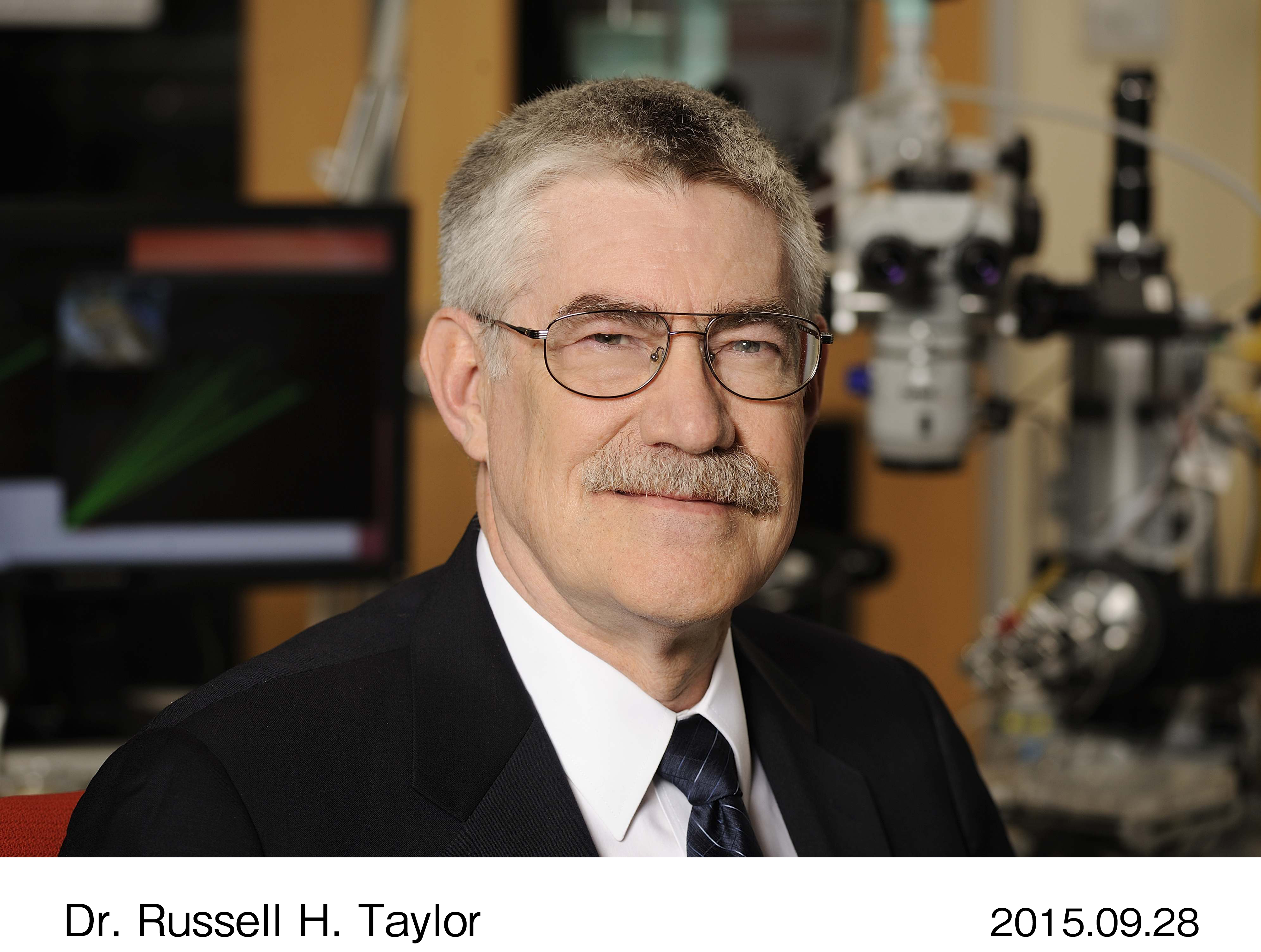 ラッセル・テイラー博士はコンピュータ科学、ロボット工学および、コンピュータ統合介入医療の専門分野において38年を超える実績を積んでいます。彼は1970年にジョンズ・ホプキンス大学にて理工学の学士号を取得し、1976年にはスタンフォード大学にてコンピュータ科学の博士号を取得しました。1976年にIBM Researchに入社し1995年にジョンズ・ホプキンス大学へ拠点を移すまでに、テイラー博士はAMLロボット言語を開発し、自動化技術部と現コンピュータ支援外科手術グループのマネージメントを行いました。ジョンズ・ホプキンス大学では機械工学、放射線学、および外科学を兼任しながらコンピュータ科学のJohn C. Malone冠教授、コンピュータ統合外科手術用システム技術工学研究センター(CISST ERC)と計算センシング・ロボット工学研究所(LCSR)の所長を務めています。テイラー博士の研究対象はロボット工学、マン・マシン協調システム、医用画像化およびモデリング、そしてコンピュータ統合介入システムです。テイラー博士は400を超える査読付出版物/書籍の著者であり、米国電気電子学会(IEEE)、米国医用生体工学会(AIMBE)、コンピュータ医用画像処理ならびにコンピュータ支援治療(MICCAI)学会、そして東京大学工学系研究科のフェローです。テイラー博士はIEEEロボット工学パイオニア賞、MICCAI学会永続的影響賞、IEEE 医療・生理部会(EMBS)技術分野賞および、コンピュータ支援整形外科手術における功績を称えたモーリスミューラー賞をはじめとする数多くの賞の受賞者でもあります。