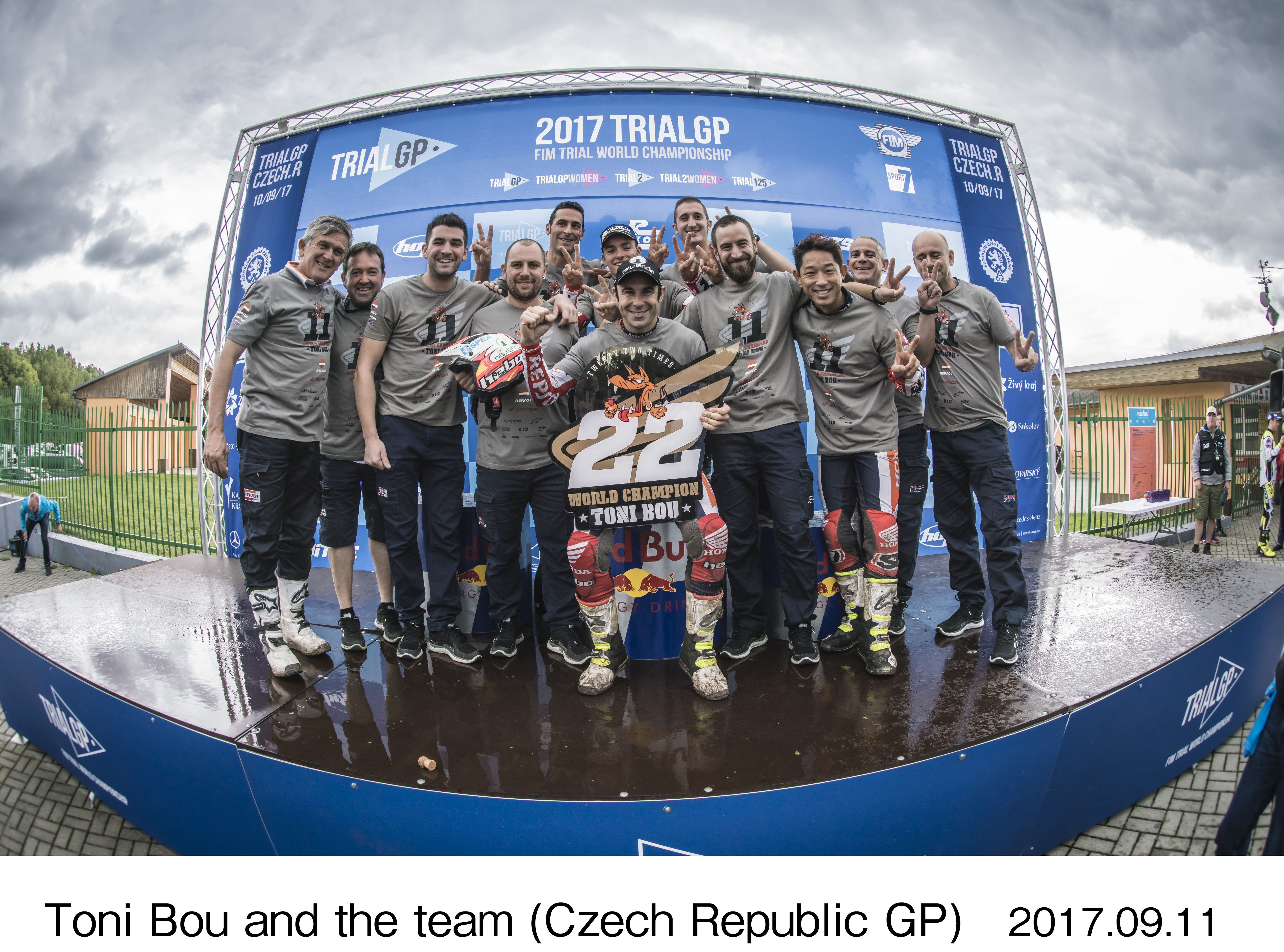 2017 FIM※トライアル世界選手権シリーズ第7戦チェコGP(9月10日開催)において、株式会社ホンダ・レーシング(以下HRC)の契約ライダーで、ワークスチームであるレプソル・ホンダ・チーム(Repsol Honda Team)のトニー・ボウが2位でゴールし、シリーズチャンピオンを決定するとともに、前人未到の11連覇を達成しました。