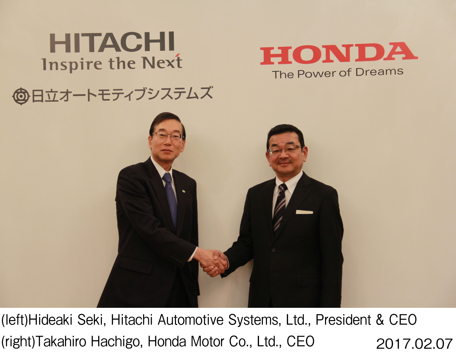 日立オートモティブシステムズ株式会社(社長執行役員&CEO:関 秀明/以下、日立オートモティブシステムズ)と本田技研工業株式会社(代表取締役社長 社長執行役員:八郷 隆弘/以下、Honda)の両社は、2月3日、電動車両用モーターの開発、製造および販売を事業として行う合弁会社設立を目的とした基本合意書を締結しました。今後、新会社設立に向けて具体的な協議を開始します。